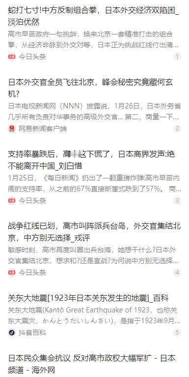 日本这次是真的急成了热锅上的蚂蚁,在北京搞出这么大动静,连遮羞布都不要了!日本驻华大使突然把所有驻华总领事都召集到了北京,关起门来开了三天紧急会议。你以为他们是来商量怎么道歉认错的?大错特错!这帮人居然是想在背后捅刀子的情况下,还要厚着脸皮求中国给个面子,简直是痴人说梦! 麻烦看官老爷们右上角点击一下“关注”,既方便您进行讨论和分享,又能给您带来不一样的参与感,感谢您的支持! 近期日本外交层面的异常动作引发外界广泛关注,据日本电视新闻网披露,日方多名负责对华事务的高级外交官齐聚北京,开展集中工作磋商。 这一动作迅速引发舆论猜测,不少人误以为日方是为近期不当言行致歉补救,试图修复双边关系裂痕,但实际会议议题并非如此。 日方核心讨论方向,是在不调整现有对华立场与公开言论的前提下,寻找缓和双边关系的可行路径,试图规避政治对立带来的经济层面损失。 这种既要维持原有姿态、又想获取关系缓和收益的思路,本质上是片面追求利益最大化,缺少推动关系改善的实质诚意。 导致日方急于调整姿态的直接原因,是日本首相高市早苗的一系列公开表态。其在多个场合发表涉华不当言论,触碰中方核心利益底线。 相关言论持续煽动对立情绪,严重破坏中日关系的政治基础,中方已多次通过外交渠道提出严正交涉,表达明确不满与坚决反对。 中日互为重要经贸伙伴,中国长期位列日本主要出口市场,汽车、零部件、精密材料、文旅消费等领域,都高度依赖中国市场需求。 尽管官方统计显示双边贸易总额保持增长,但政治氛围趋紧,已让日本商界普遍感到经营压力,多地企业与行业协会呼吁政府理性处理对华关系。 日本国内经济面临多重压力,2025 年全年贸易逆差规模仍处高位,对美出口出现下滑,对华市场的稳定作用愈发突出。 在此背景下,日方外交官集中磋商,本质是应对国内经济与商界的双重压力,试图找到平衡政治姿态与经济利益的办法。 中日关系的博弈始终呈现不对称格局,中方的立场清晰且一贯,在历史认知、钓鱼岛主权、台湾问题等核心议题上绝不退让。 中方始终以中日四个政治文件为基础,坚持以史为鉴、面向未来,推动两国关系在恪守共识、尊重底线的轨道上前行。 日方长期回避历史问题,在核心议题上态度含糊,部分政治人物反复挑衅,外交姿态偏于强硬,缺少相向而行的实际行动。 日方试图在不改变立场、不作出实质让步的情况下,单方面要求中方让步、维持经贸便利,这种外交思路难以取得实际效果。 两国关系的改善从来不是单方面诉求可以实现的,必须建立在相互尊重、恪守承诺、妥善处理分歧的基础之上。 日方若真想缓解当前困局,首先要正视历史问题,恪守中日之间达成的各项政治共识,停止在敏感议题上制造事端。 同时需要调整对华表态口径,尊重中国核心利益与重大关切,以具体行动释放善意,而不是停留在口头缓和的层面。 当前中日之间仍保留多层次沟通渠道,地方交流、经贸对话、民间往来并未完全中断,关系改善仍存在现实空间。 日方应当珍惜现有沟通基础,放弃投机性外交思路,正视自身言行带来的负面影响,主动纠正错误、调整姿态。 只有日方拿出正视历史、尊重底线、言行一致的诚意,才能逐步修复互信,让两国关系回到健康稳定的发展轨道。 从长远来看,中日地缘相近、利益交融,合作远大于分歧,对立不符合两国人民与工商界的共同利益。 日方当前的焦虑,本质是错误政治姿态与现实经济利益产生冲突的结果,破解困局的钥匙始终掌握在日方自己手中。 停止挑衅、尊重共识、务实合作,是中日关系行稳致远的唯一路径,也是日方摆脱当前外交与经济双重压力的正确选择。