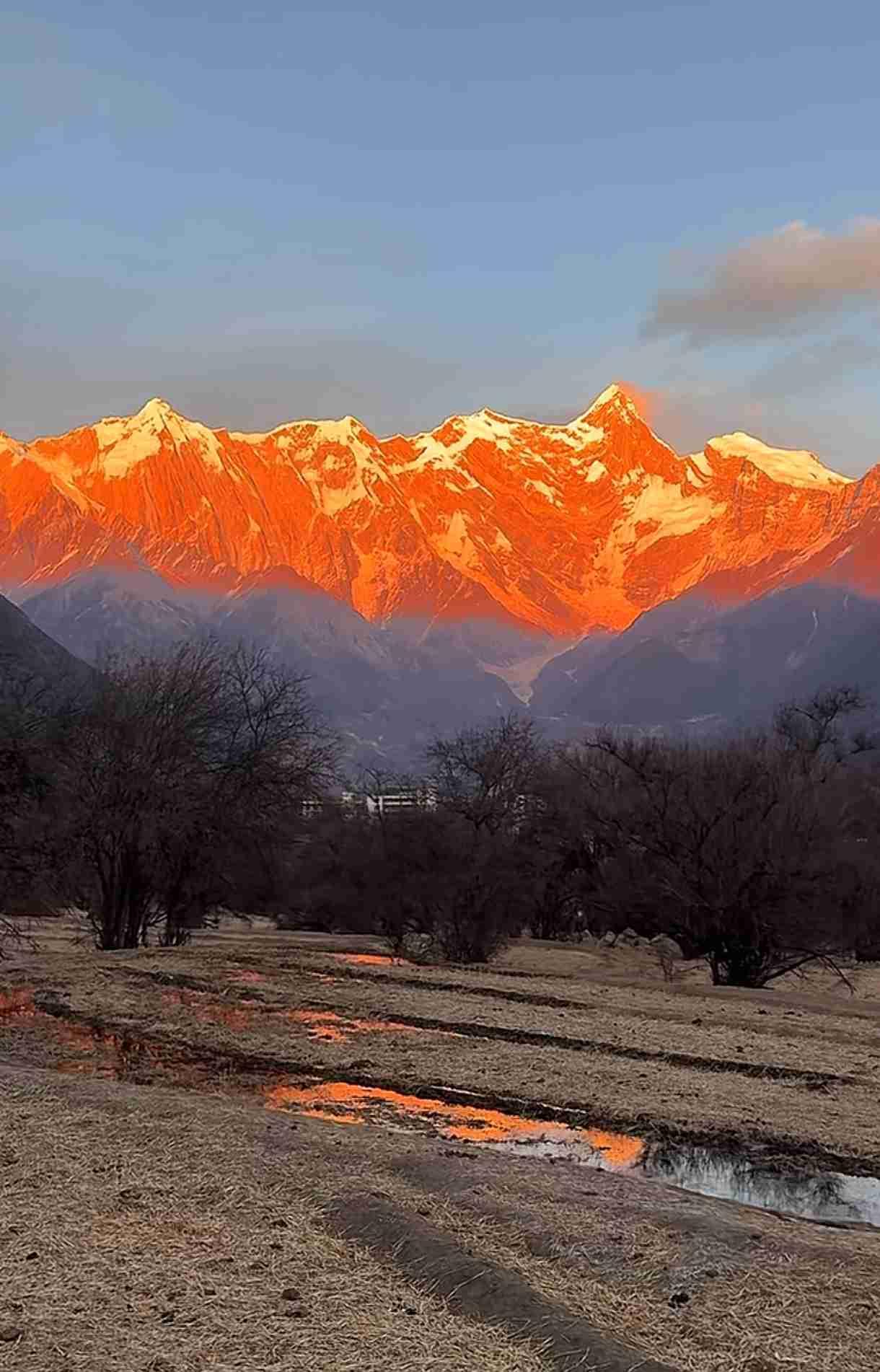 我的今日状态:😁轻松愉快 我这里的天气:☀️晴天 日照金山