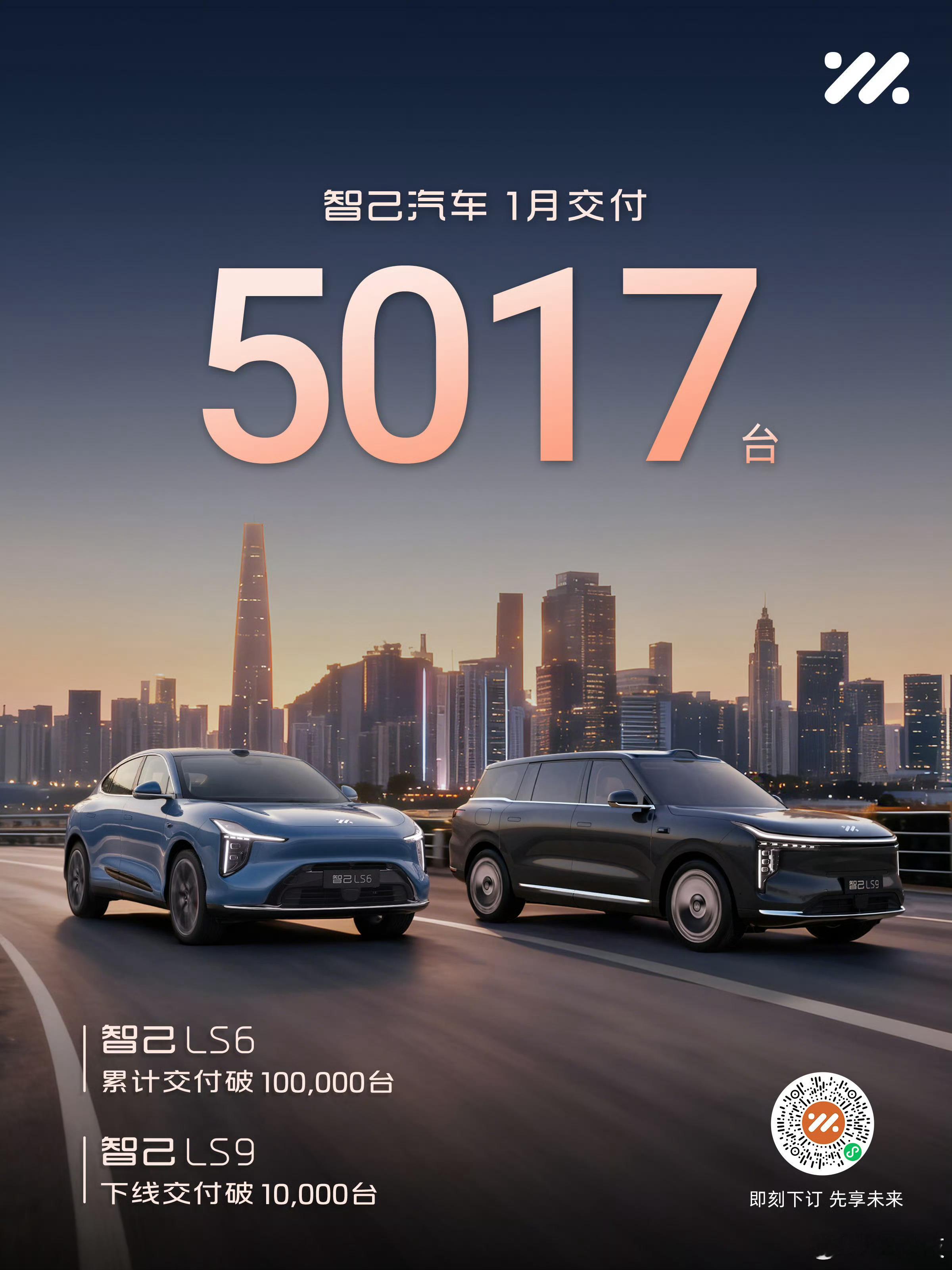 2026年1月,智己汽车交付5017台!智己LS6累计交付破100,000台,智己LS9下线交付破10,000台,Hyper版即将登场,最好开的9系旗舰。智己LS8马上也要和大家见面了!智己今年也是产品大年,换上大电池增程,销量很值得期待!
