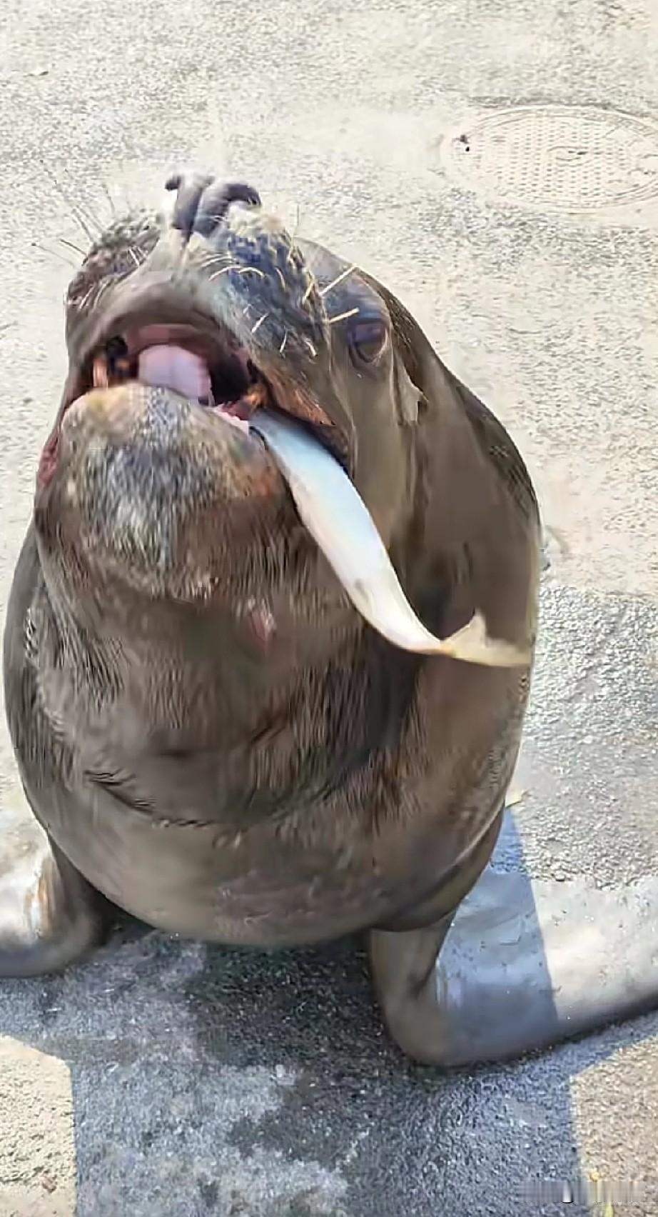 不知道这是一头海狮,还是一头海象,它的智商实在是太高了,能够按照驯兽员做出的指令,做出一些非常好玩的动作,尤其是它做出的这张笑脸,是非常让人震惊的,在我的认知当中,很少有动物能够做出笑的模样,除了灵长类之外,感觉其他动物是不会的,但是这个动物做到了!