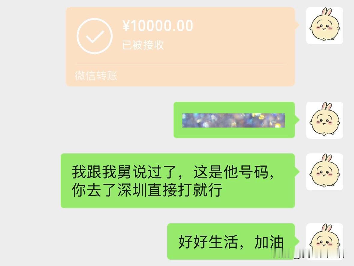 给小时候讨厌的人转了一万 前段时间我和好友小春一起吃饭 小春突然提到了燕子 我和小春幼儿园、小学、初中都在一个学校上学 但高中,我们考上了两所高中 也是在高中,小春和同桌的燕子成为了好朋友 我当时脾气很大 觉得燕子“抢走”了小春,所以对她没什么好感 其实就算抛开小春,我和燕子也成不了朋友 燕子性格很软,不爱说话,看人总是怯怯的 和我性格正相反 记得小春刚和燕子玩时,曾约着我俩一起逛街 我和小春说话、玩闹 燕子就在旁边看着 小春想带着燕子一起加入话题,她就嗯嗯啊啊的应和一下 我跟她说话时,她也只是呆呆的看着我不说话 我觉得她很奇怪,就不再理她 小春也觉得很尴尬,所以后面我们三个基本不在一起玩 后来我和小春考上了同一个城市的大学,燕子则留在了我们本地读专科 我们就更没有联系了 燕子在我心里的形象也就一直是我们高中那个样子 短短的头发,消瘦的体型,低垂的脸和眼睛 直到现在,小春又一次提起燕子 小春说,燕子是个很好的人 当时高中,忘带书的人要被老师罚站 燕子这么一个胆小的人,却在看到小春害怕的眼泪时把自己的书给了小春 小春说,燕子家里没💰 有一个姐姐一个弟弟 姐姐早早跟人“跑了”,家里人就牢牢拴住燕子 燕子考市了外地的大学,家里人让她上本地的大专 说这样好就业 燕子毕业后在郑州找到了工作,家里人让她把工作辞了回老家上班 说在郑州上班太幸苦 什么不辛苦呢?嫁人不幸苦 燕子的爸妈让她嫁给一个大她七八岁的人 小春说她问过燕子,喜不喜欢那个人 燕子说不喜欢 可燕子又说,不喜欢又怎么样,她也不知道她喜欢什么 喜欢大专?还是喜欢把工资都上交父母? 小春哭了,她说燕子很痛苦,但她没办法 我看着小春的眼泪,想我一定要帮她 我让小春给燕子打☎️ 我跟燕子说,我有个亲戚在深圳的一个厂子里当小领导 她可以去那里做工,吃住都在厂里,工钱不算多,工作不算轻松 却很简单,她可以在简单的工作里好好想想自己想要什么、喜欢什么 她如果同意,明天就可以去深圳 费用的事情不用担心,我会给她 燕子沉默了一会,说想来找我 我拒绝了,没什么必要 其实我还是不怎么喜欢她,我俩性格就玩不到一起去 现在已经过去几个星期了,燕子突然加了我 说她已经坐上火车了 说原来去深圳的车票,就180.5元 我给她转了💰,跟小春说了这件事 希望她能睡个好觉