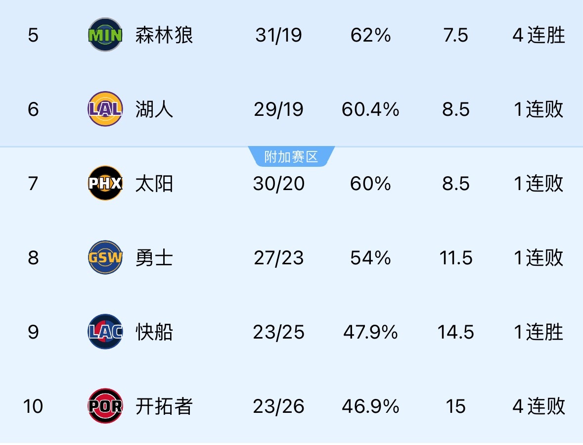 快船客场击败太阳,湖人队重新回到第六。