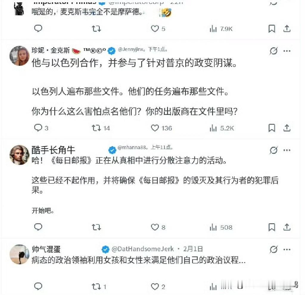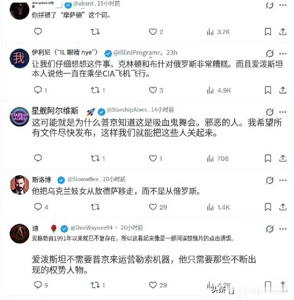 当昨天大英《每日邮报》把爱泼斯坦定性为“来自俄罗斯的克格勃(间谍)”,爱泼斯坦事件是俄罗斯联邦安全局(FSB)设下的陷阱后,各国网民不同意了。 3700余条跟帖中,爱泼斯坦实际上是摩萨德特工的认定,占了绝大部分。 西方媒体的信誉,瞬间垮塌, 或许,它们从来就没啥信誉。 #爱泼斯坦文件公布 ##爱泼斯坦案文件# #爱泼斯坦 吃人#