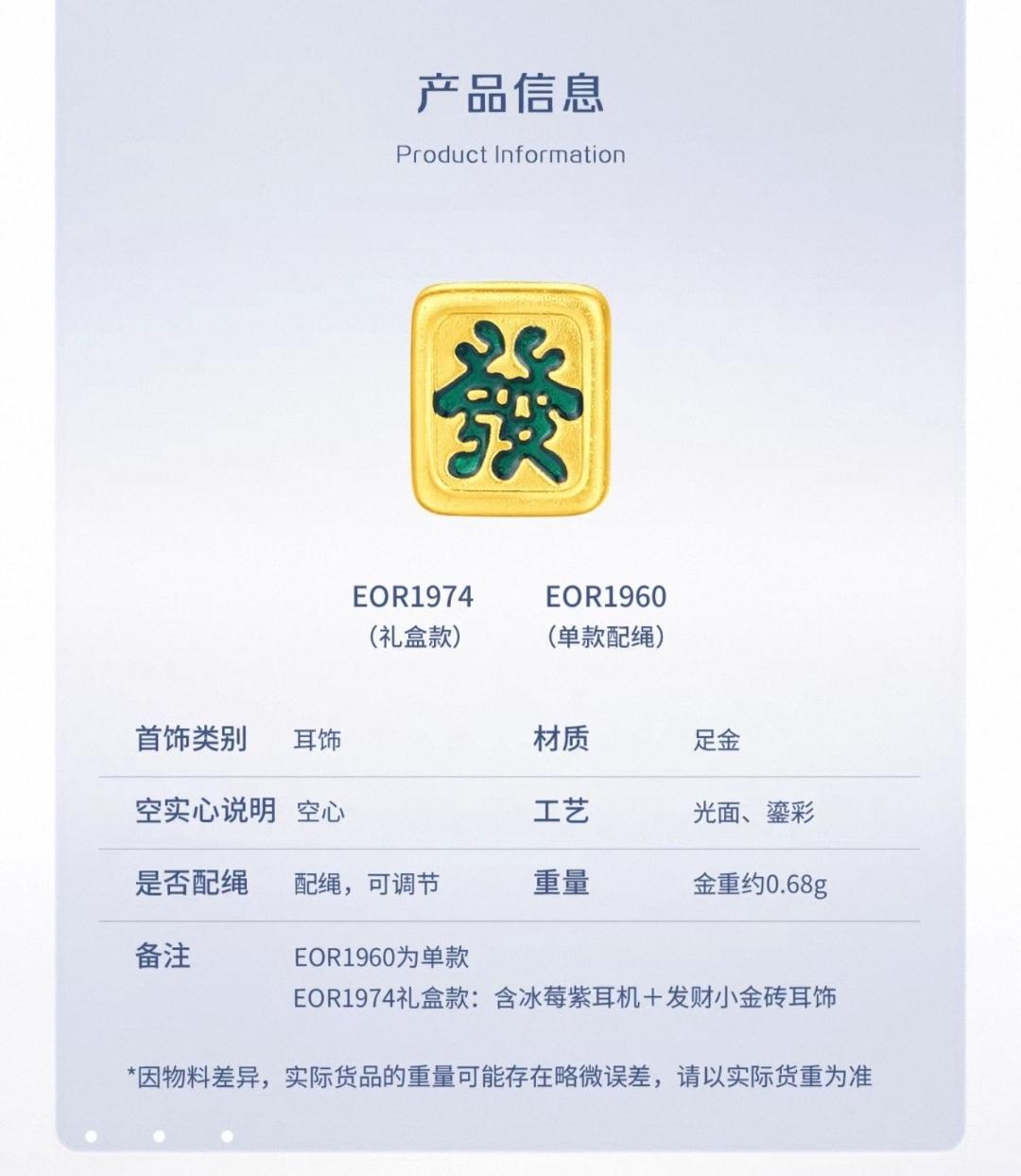还是华为会玩,搞了个华为FreeClip 2周大福金饰联名礼盒,3388元起。 一發暴富套装礼盒(冰梅紫) ,金重约0.68g,3388元 凤笙潮韵套装礼盒(玫瑰金),金重约1.31g,4888元 3388-1299=2089,4888-1299=3589,相当于2089买了一个0.68g的黄金,3589买了1.31g黄金。