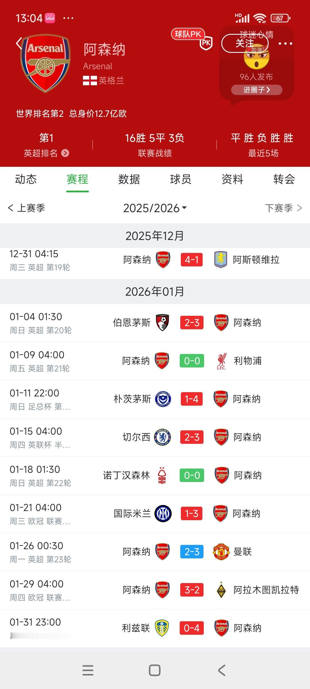 阿森纳夺冠不是神话,而是正在发生的事情。 12月底干掉争冠对手阿斯顿维拉。 1月只输给曼联一场比赛,正常稳定。 隔壁曼城不稳,哈兰德好久没进球。 已经没有球队能跟他们争英超冠军,关键是欧冠第一,能否欧冠有所突破![可怜]
