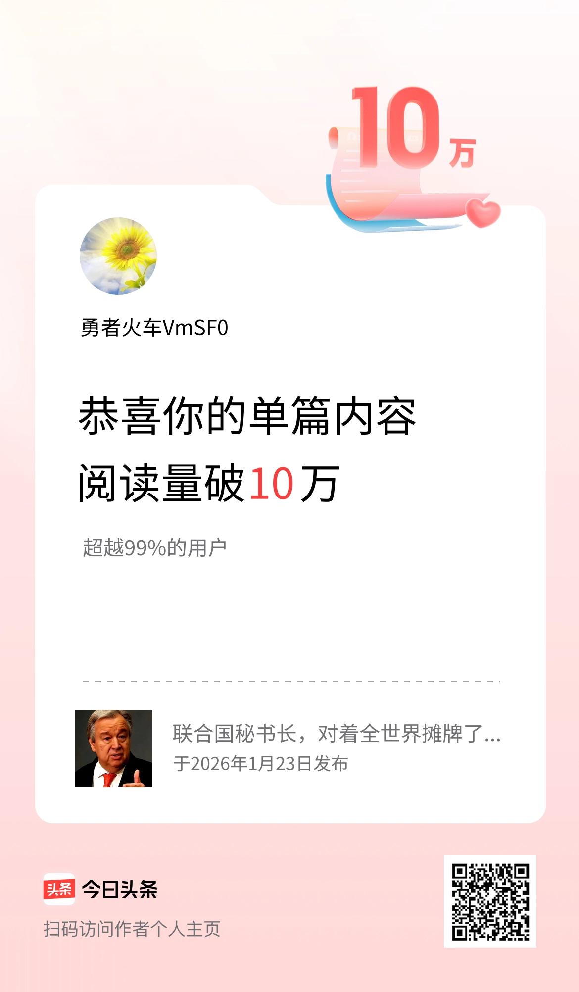 单篇内容获得阅读量破10万啦!
