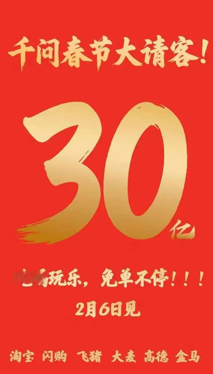 年前大福利来了!阿里千问砸30亿搞春节请客计划,这波福利你心动了吗?这可是阿里史上春节最大投入,更是今年大厂AI大战的最高投入,2月6日正式上线,吃喝玩乐全免单还能抢大额红包,这样的实惠不得就是亏! 说到布局,1月中旬千问就全面接入淘宝、支付宝、飞猪、高德等阿里生态,上线400多项AI办事功能,真正大手笔,彻底告别单纯聊天,迈入AI办事时代。 这回可是真方便,不用来回切APP,一句话就能搞定点外卖、囤年货、订机票酒店,甚至查政务办签证,就连买电影票功能也在灰测,即将全面上线,你说实用不实用? 今天我试了试,说一句“帮我点杯拿水饺”,千问直接匹配商家、生成订单,支付宝AI付一键付款,真的太丝滑,真正实现“说一句就送到”,这种生活当中的科学伴侣着实方便了我们的生活。 我们备好APP,2月6日正式上线!今年春节,千问开启全球AI购物元年,我们订年夜饭、看春节档、全家出游,认准千问就够了!