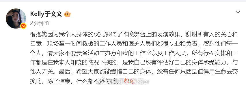 于文文回应演唱会晕倒于文文发文回应