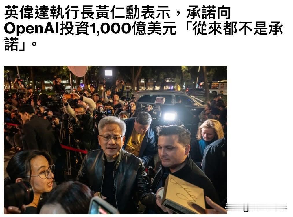 彭博社报道,英伟达(Nvidia)首席执行官黄仁勋(Jensen Huang)表示,该公司此前被提及的高达1000亿美元的OpenAI投资计划“从未是一项承诺”。 黄仁勋在台北与媒体会面时指出,英伟达对于任何融资事宜都会“一轮一轮地”考量,并将这一潜在投资描述为“规模庞大”的项目,且有可能成为“我们(英伟达)做过的最大一笔投资”。 当媒体问及报道中提到的“他对OpenAI不满”这一说法时,黄仁勋回应称:“那是胡说八道。”他强调,英伟达会投入大量资金,同时对OpenAI的工作表示信任,称OpenAI是当代最具影响力的公司之一。 尽管黄仁勋未明确透露英伟达将投入多少资金,但他表示这一投资“规模庞大”,且当前的融资轮次规模不会接近1000亿美元。他补充道,能否按计划启动第一吉瓦(1GW)算力的部署,仍需由OpenAI决定,因为“这是他们(OpenAI)的基础设施”。