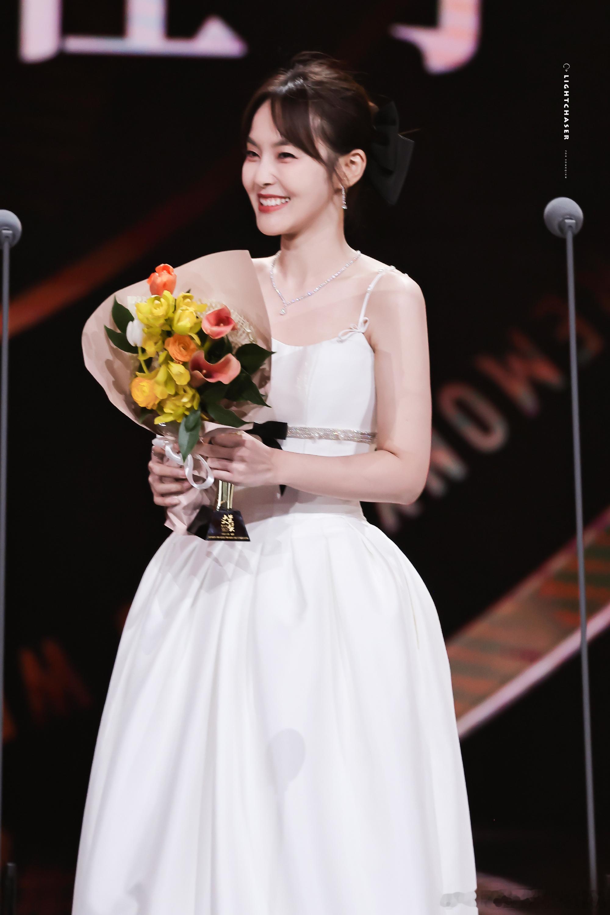 张佳宁好明媚的杀青状态 捧花和笑容真是绝配,整个画面洋溢着幸福的感觉。演员在作品完成时的这种快乐,观众也能感受到。