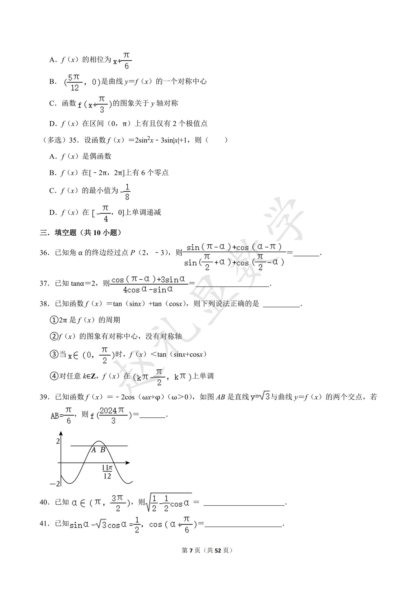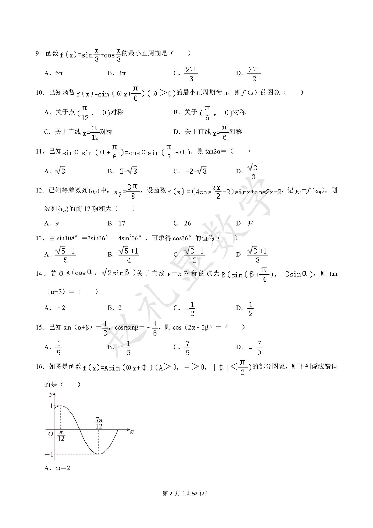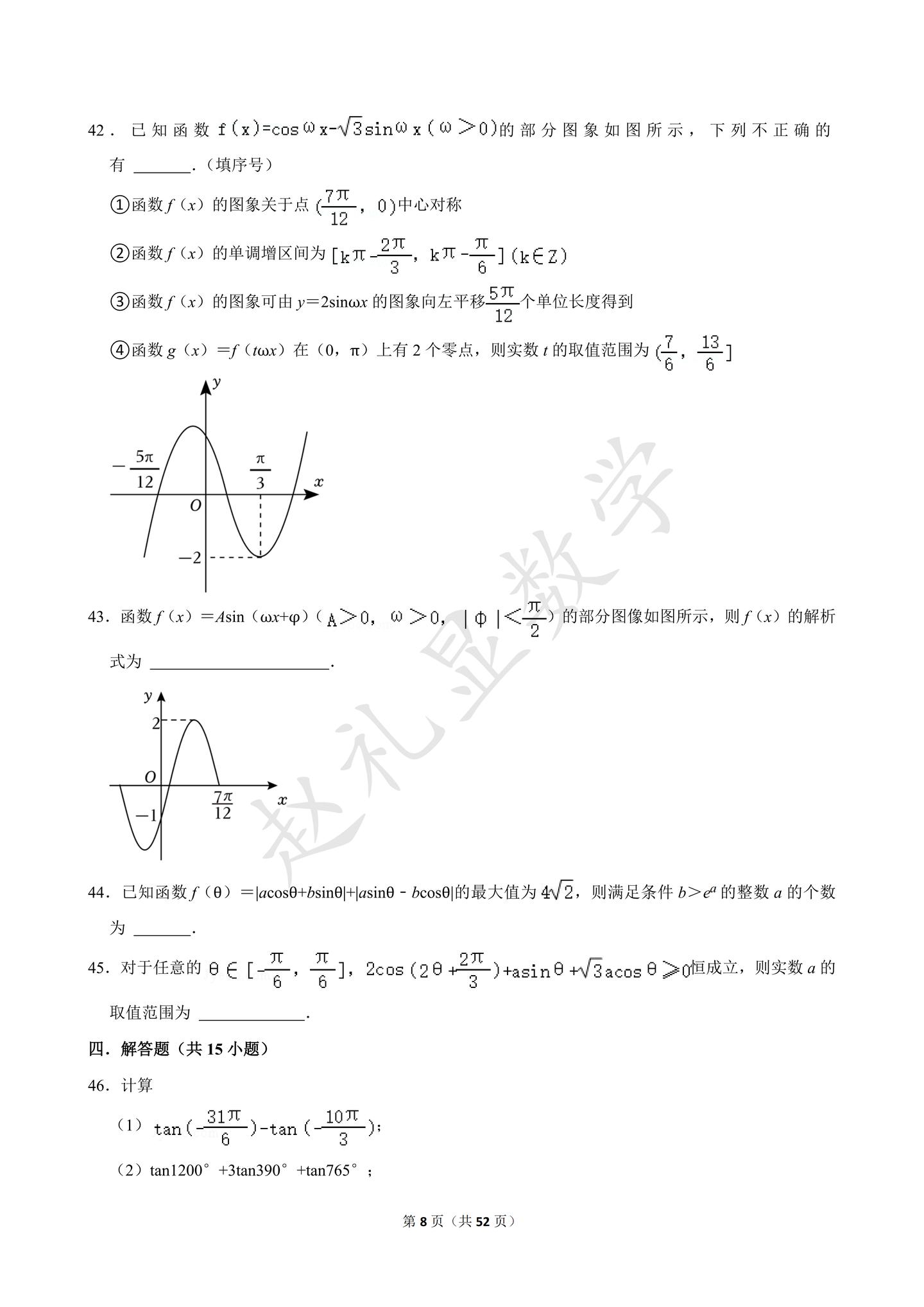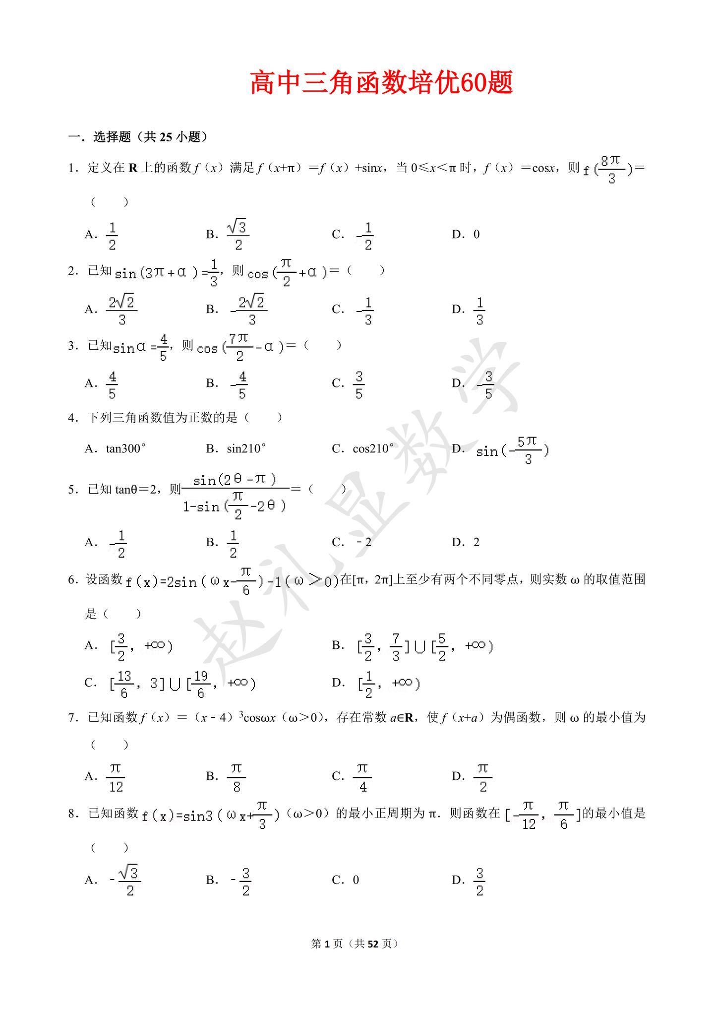 寒假就做完这60题,不信三角函数还学不好。【52页】三角函数专题,可以下载打印~