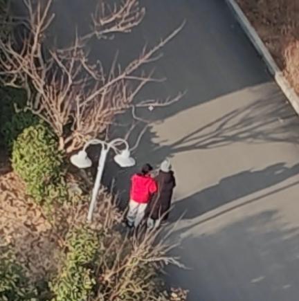小区这两个人干嘛呢? 她们应该是一老一少在外面晒太阳,出来兜兜风?