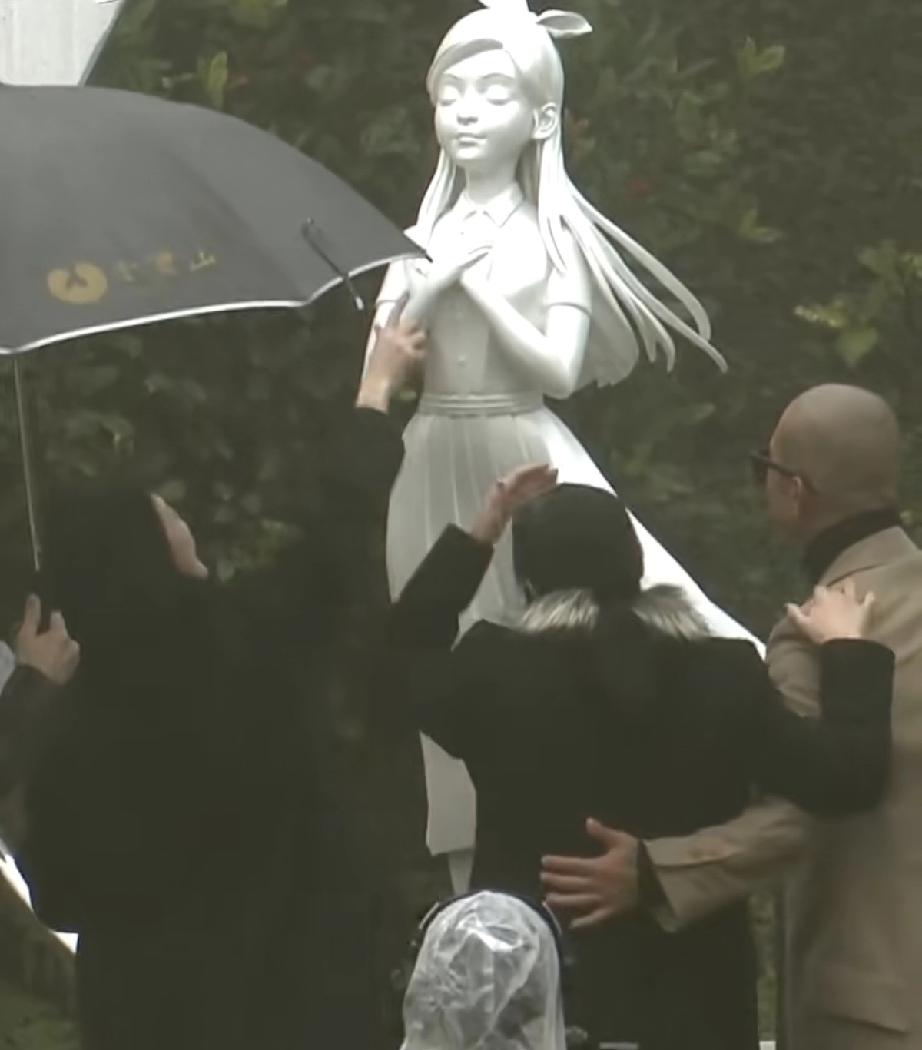 看哭了, 大S雕像揭幕,小S一边哭一边握她的手,妈妈和具俊晔同样哭到不行! 2月2日,距离大S去世已经一年了,时间过得可真快,大S当年是在日本旅游时不幸感染病毒引起肺炎,最终在日本东京去世,终年48岁。 大S去世的消息传来,无数人泪崩,没想到那么漂亮的她就这么走了,走的如此之快,让人猝不及防。 大S去世以后,具俊晔一直没有离开过台湾省,还时不时去大S的墓地痛哭,表达对她的思念。 2月2日,大S的雕像在台湾省台北金宝山碑林名人区揭幕,挨着已故明星高以翔,雕像由具俊晔亲自设计,汉白玉材质,大理石基石,高度约2.2米。 当具俊晔亲自将雕像揭开时,在场的人无不泪崩,小S一边哭一边用手抚摸着雕像的手,就如同抚摸生前的大S一样。 不得不说,大S去世的这一年,小S苍老了不少,侧面看下巴竟然变圆润了。 而大S的妈妈黄春梅和具俊晔则在雕像前哭到不行,尤其具俊晔哭得快起不来了,黄春梅连忙把他扶起来。 这一幕看着太让人心痛了,大S这一走,给家里人留下了一辈子的阴影,更让无数粉丝惋惜,不过,她的雕像设计非常漂亮,可见具俊晔是很用心地!