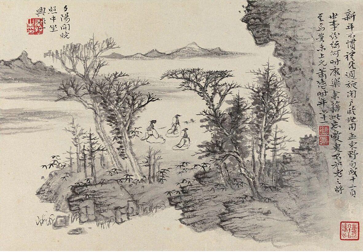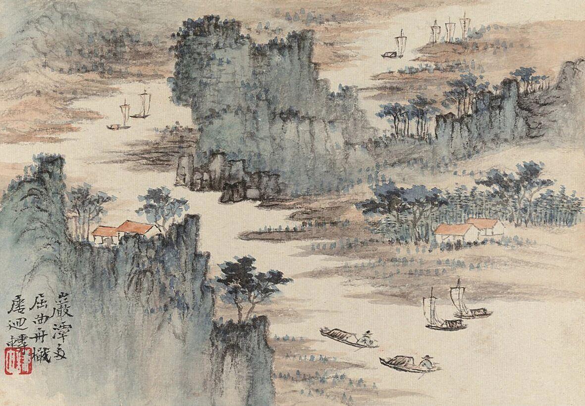 🌹书摘|人无千日好,花无百日红。摘自《醒世恒言·卷一》 🌹赏画|萧愻《山水册》 传统文化 读书 绘画