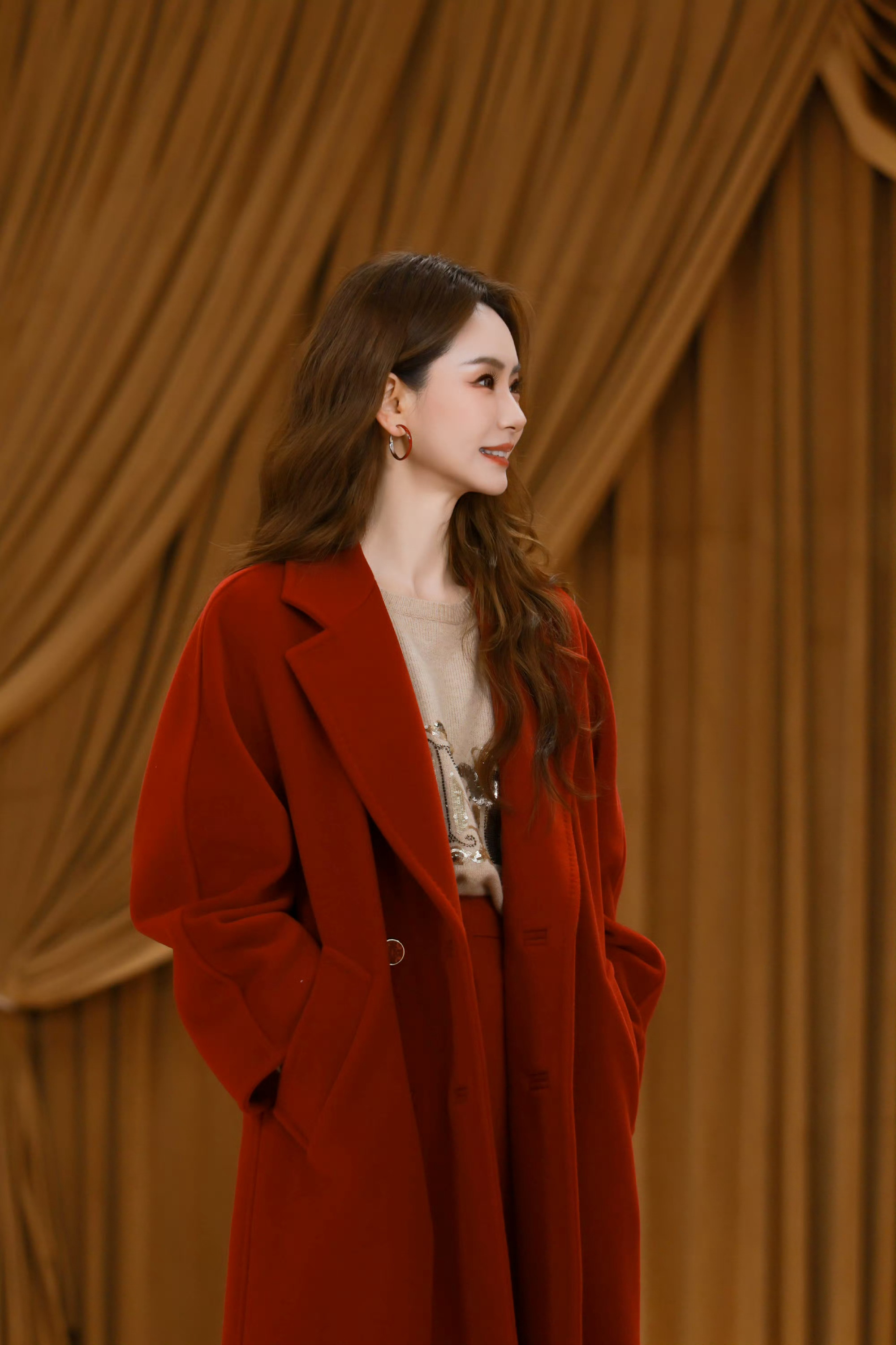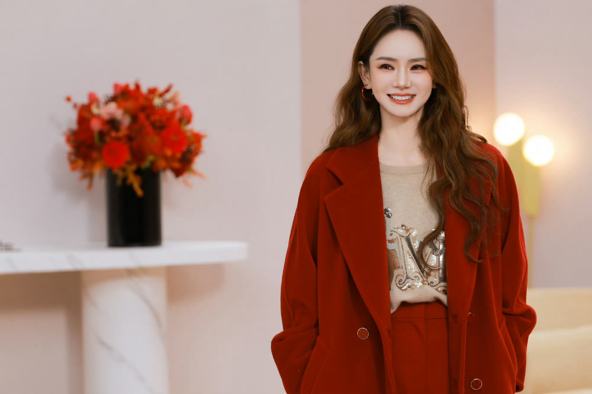 戚薇这身衣服红红火火!一路生花!戚哥笑起来好美