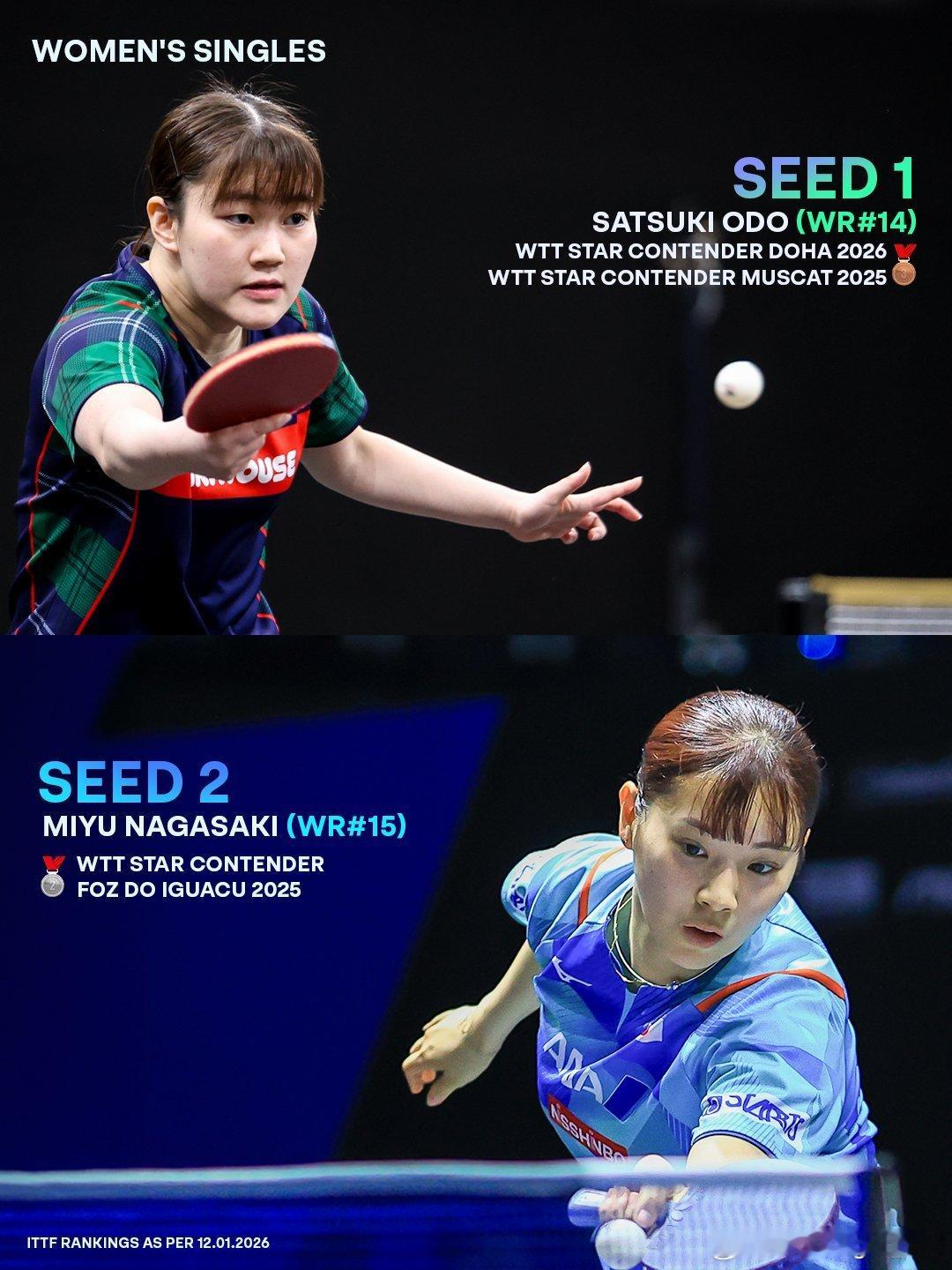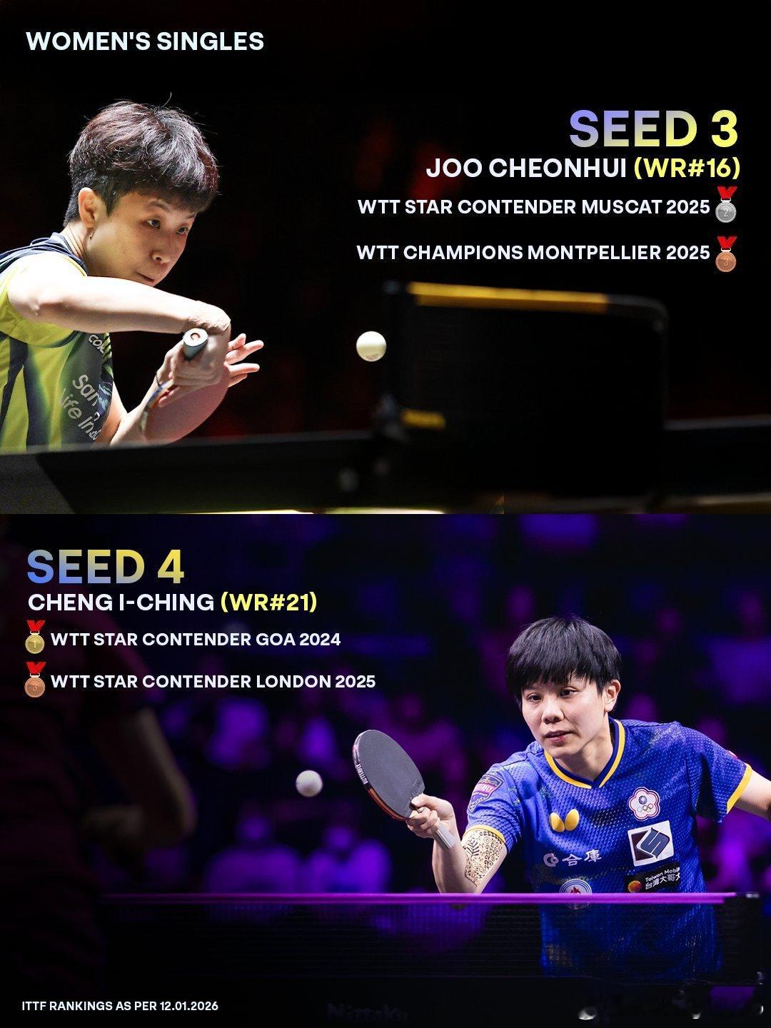 WTT球星挑战赛金奈站2026单打种子选手介绍