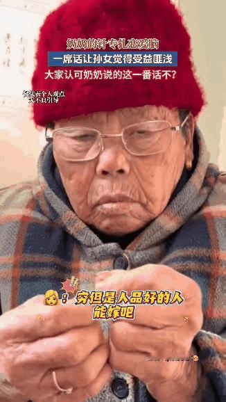 “这个奶奶火了!” 江苏一女子,过年回家陪奶奶唠嗑,随口问了句“穷但是人品好的人能嫁吗”,本来以为会得到“人品最重要”的安慰,可奶奶的一番话,直接让她的恋爱脑当场清醒。奶奶一边穿针引线,一边说出的大实话,句句扎心又现实,网友直呼“真是人间清醒!” 奶奶把线头往嘴里抿了抿,眯着眼往针眼里送,慢悠悠开口:“人品好是根基,可光有根基没砖瓦,这房子能住人吗?”手里的针“嗖”地穿过去了,她拽了拽线,打了个结,“你以为人品好就能当饭吃?下雨天漏雨的时候,他说句‘对不起’,能挡住雨不?孩子发烧半夜哭,他说句‘我心疼’,能替你抱着孩子跑医院不?” 女子没吭声,奶奶又拿起块布缝补,针脚密得像鱼鳞:“我不是说穷不行,是怕他穷得没志气。年轻时候穷,肯下力气挣,日子总会好。就怕他觉得‘我人品好你就该跟着我吃苦’,那才是坑人。” “你爷爷当年也穷,”奶奶忽然笑了,眼里闪着光,“可他每天天不亮就去挑货,回来给我带块糖,说‘以后让你天天有糖吃’。现在呢?咱家哪样不是他一砖一瓦挣出来的?人品好,得配上肯上进,那才叫真靠谱。” 旁边的姑姑听着,插了句:“妈,现在年轻人不都讲爱情吗?”奶奶瞪她一眼:“爱情能当煤气罐使?没柴米油盐打底,爱情早晚会被熬成渣。你当我没年轻过?当年我跟你爷爷拌嘴,多半是为了下个月的房租,可他转身就去打零工,从没说过‘就这样吧’,这才是能跟你过一辈子的样。” 女子掏出手机想记下来,奶奶抬手拍了她一下:“记这干啥?你得看明白,选人不是选标签,是选他遇事的样子。穷的时候,他是怨天尤人还是闷头干活?难的时候,他是先顾着你还是先顾着自己?这些比‘人品好’三个字实在多了。” 穿完最后一针,奶奶把针线放下,看着女子:“嫁不嫁,别听别人说啥,也别光看他现在啥样。你就想,以后要是日子难了,他能跟你一起扛不?要是能,穷点怕啥?要是不能,再富也别沾。” 这话传到网上,有人说奶奶太现实,把感情说俗了。可更多人在底下叹气:“这哪是现实?这是过来人摔过跤才懂的理。”有个姑娘留言:“我爸就是这样,当年穷得叮当响,可我妈说,他每次发工资,再难都先给她买块肉,现在日子早好起来了。” 也有人抬杠:“难道人品好还比不上钱?”底下立刻有人回:“人品好是前提,但光有这个不够。就像你买个锅,锅底得厚实(人品好),还得能烧得热(肯努力),不然再厚实也做不熟饭啊。” 其实奶奶的话,不是否定人品的重要性,是怕年轻人被“人品好”三个字蒙了眼。感情里最忌讳的,不是穷,是又穷又懒,还觉得别人该陪他耗着。真正的过日子,是人品打底,加上肯使劲,两样凑齐了,日子才能往亮处走。 各位读者你们怎么看?欢迎在评论区讨论。