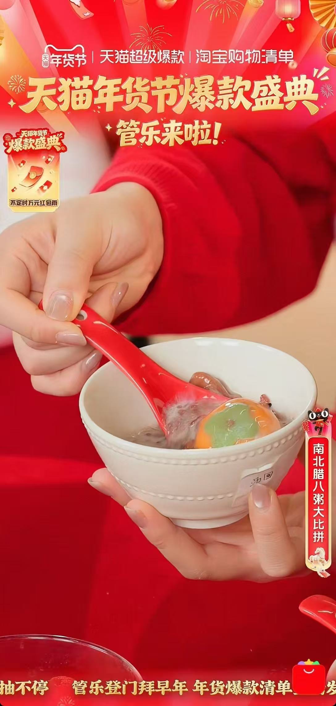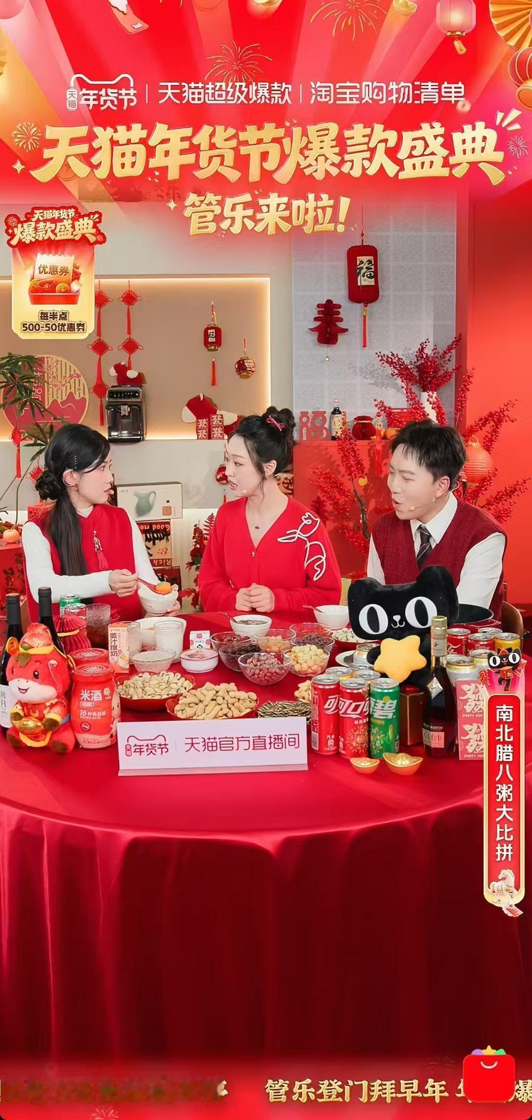当代人过年回家现状管乐承包天猫年货节满满快乐!红火年味穿搭超戳心,直播间花式整活欢乐不停,免单福利狂抽、红包雨不停下,福利拉满年味超浓,新年氛围感直接拉到天花板,囤年货的快乐全在这啦~