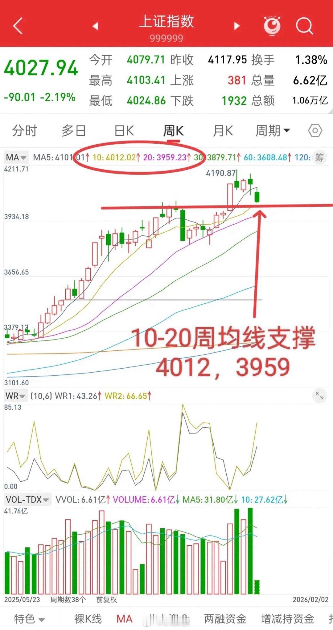 大盘十周均线支撑4012,20周均线3959支撑。
