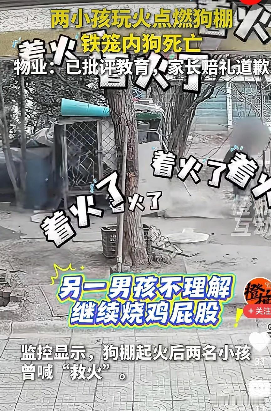 2月1日,在江苏的东海,正值孩子放假的阶段,两名年幼的孩子,用一场肆无忌惮的玩火,将一个鲜活的生命推向了绝境,也给所有家长和社会敲响了警钟。 据了解,事发当天,两名孩子在某街道上玩火,一人将火源引向了关有狗子的棚屋,另一人则在一旁焚烧鸡屁股,全然没有意识到火灾的危险性。 起初的嬉闹很快演变成失控的危机,干燥的棚屋材料遇火即燃,火焰迅速蔓延开来。铁笼中的小狗察觉到危险,发出撕心裂肺的哀嚎,可坚固的铁栏成了它无法逾越的牢笼,只能在火海中无助挣扎。 直到火势越来越大,两名孩子才被眼前的景象吓傻,慌乱中大喊“起火了,救命”,周边居民闻讯赶来,奋力将火扑灭,但此时笼中的小狗已经没有了生命迹象,尸体被烧得焦黑。 事件发生后,物业第一时间对两名孩子进行了批评教育,孩子的家长也向相关方赔礼偿了6000块。这场由贪玩引发的事故,不仅让一个小生命惨遭横祸,更暴露了未成年人安全教育中的薄弱环节。 孩子们或许并无主观恶意,却因缺乏对生命的敬畏之心、对危险的认知能力,做出了如此的行为。寒假期间,除了保障孩子自身安全,更要引导他们树立正确的价值观,教会他们敬畏生命、远离危险,明白每一个行为都可能带来不可挽回的后果。 (图片来自网络视频)