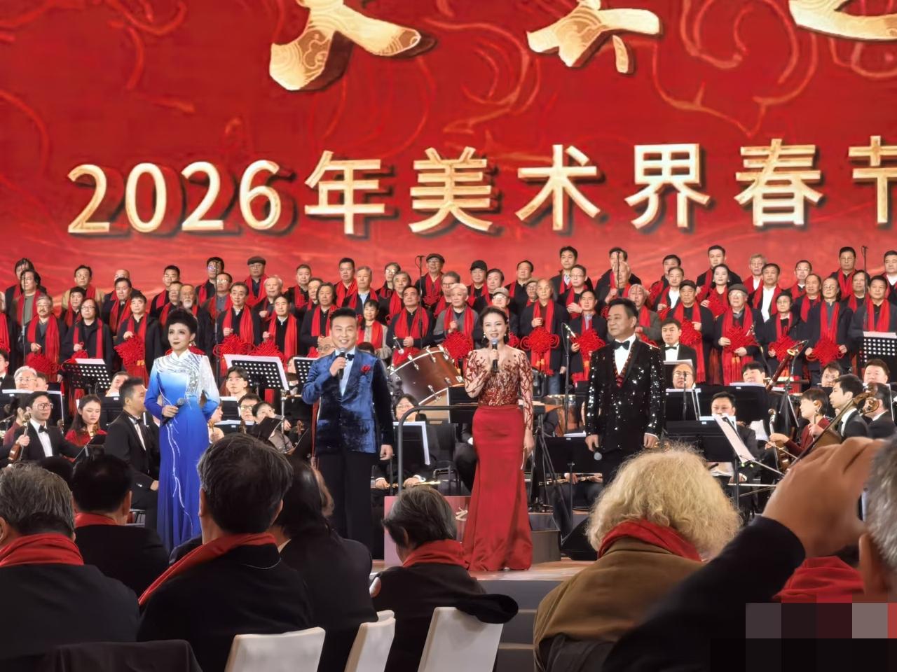 2026美术界春晚,敬一丹、张泽群、刘芳菲气质依然好,唯独刘诗昆老了一点! 2月2日,央视名嘴张泽群晒出自己刚刚和刘芳菲一起主持2026年美术界春晚的画面。 这次晚会来了不少大咖,其中有敬一丹、张泽群、刘芳菲、戴玉强、刘诗昆。 张泽群今年61岁了,2025年时他曾晒出在北京颐和园入园时的老人证,证明自己退休了,是老人了。 那时他头发花白,身材肥硕,脸色发黑,看着挺老的,确实是像老年人。 这次主持晚会,他穿了一身西装,打扮了一番,虽然比起年轻时有点发福了,但整体气质还是不错的。 敬一丹71岁了,头发乌黑,也可能是假发,脸上妆容精致,虽然眼周围有皱纹,但也不是那么明显,不像70多岁,像60多岁的,比较显年轻。 刘芳菲49岁,精心打扮了一番,穿了一件拖地的修身旗袍,感觉和年轻时相比,状态没什么大的差别,还是挺有气质的,她看着个子好高,像是1米80。 戴玉强今年63岁,依旧西装革履,只是头发花白了,脸变圆润了,稍微有点老了,但总体上还行吧,这么大的年龄还要唱美声,是非常费力气的。 刘诗昆是最老的,他已经87岁了,站都快站不稳了,弯腰驼背的,嘴特别歪,歪得明显了,感觉他身体状况不如从前了,这么大年龄真该退休了,继续这样折腾自己,其实不好!