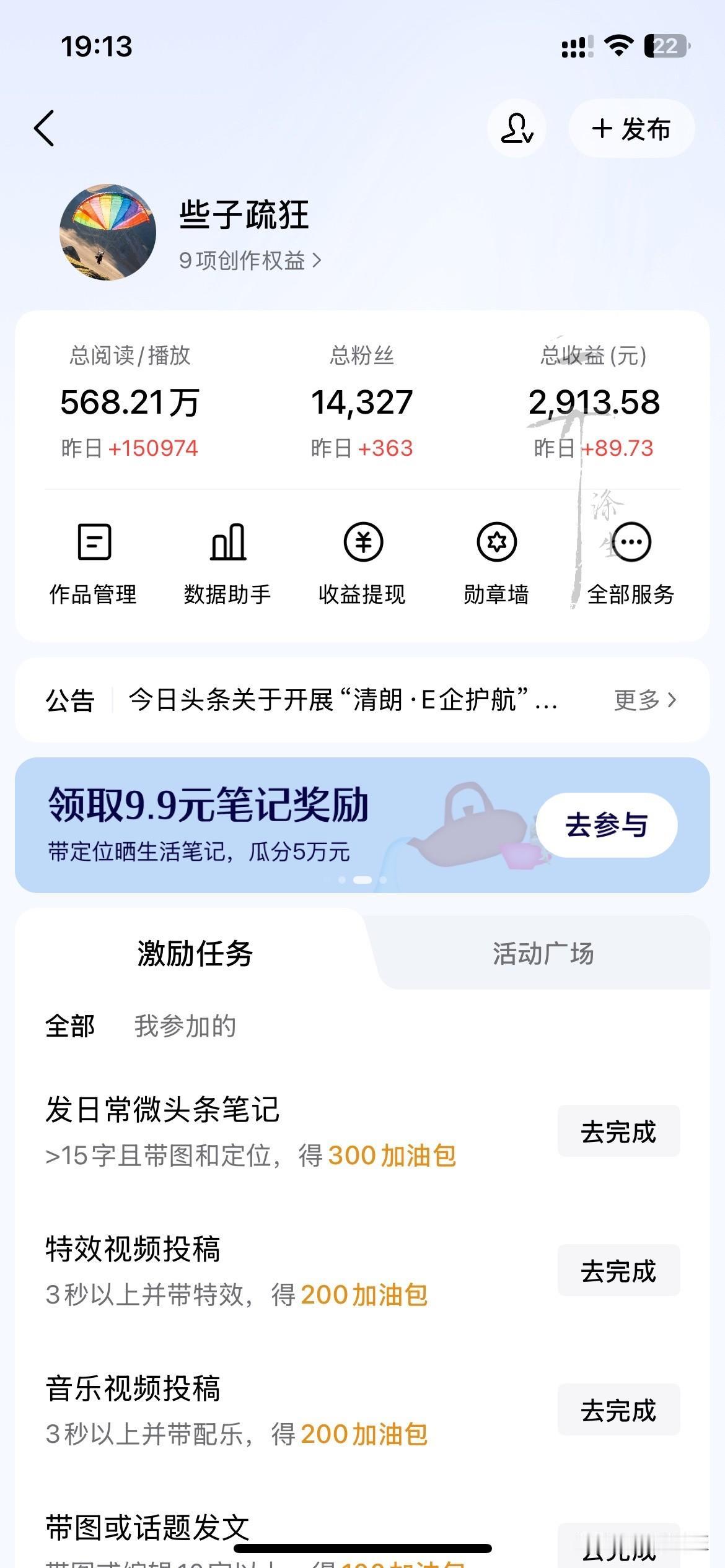 说出来你可能不信, 我在头条写了 一周多,赚了 1227.87 元。 无非就是做了这几步 说实话,也没干什么“高深操作”。 不外乎就是用心找题材,然后去做, 通过题材阅读反馈, 结合平台热榜,迅速判断热点在哪里, 再围绕热点精准打击,去批量换角度切入,同一个题材分五个角度切入。一下子暴五篇。 一旦判断清楚,就不犹豫,直接下手。 有的讲背景,有的讲利益,有的讲后果,有的站队,有的专怼某个点。 不是凑数,是换视角。 当你看到后台一条条 “消息 99+” 的时候, 那种感觉真的很爽,也很踏实—— 不是运气,是判断对了。 当然,也很感谢每一位点进来、看完、留言的朋友。 你们的阅读和互动,才是我继续写下去的动力。 继续慢慢写,也继续认真写。 感谢平台!