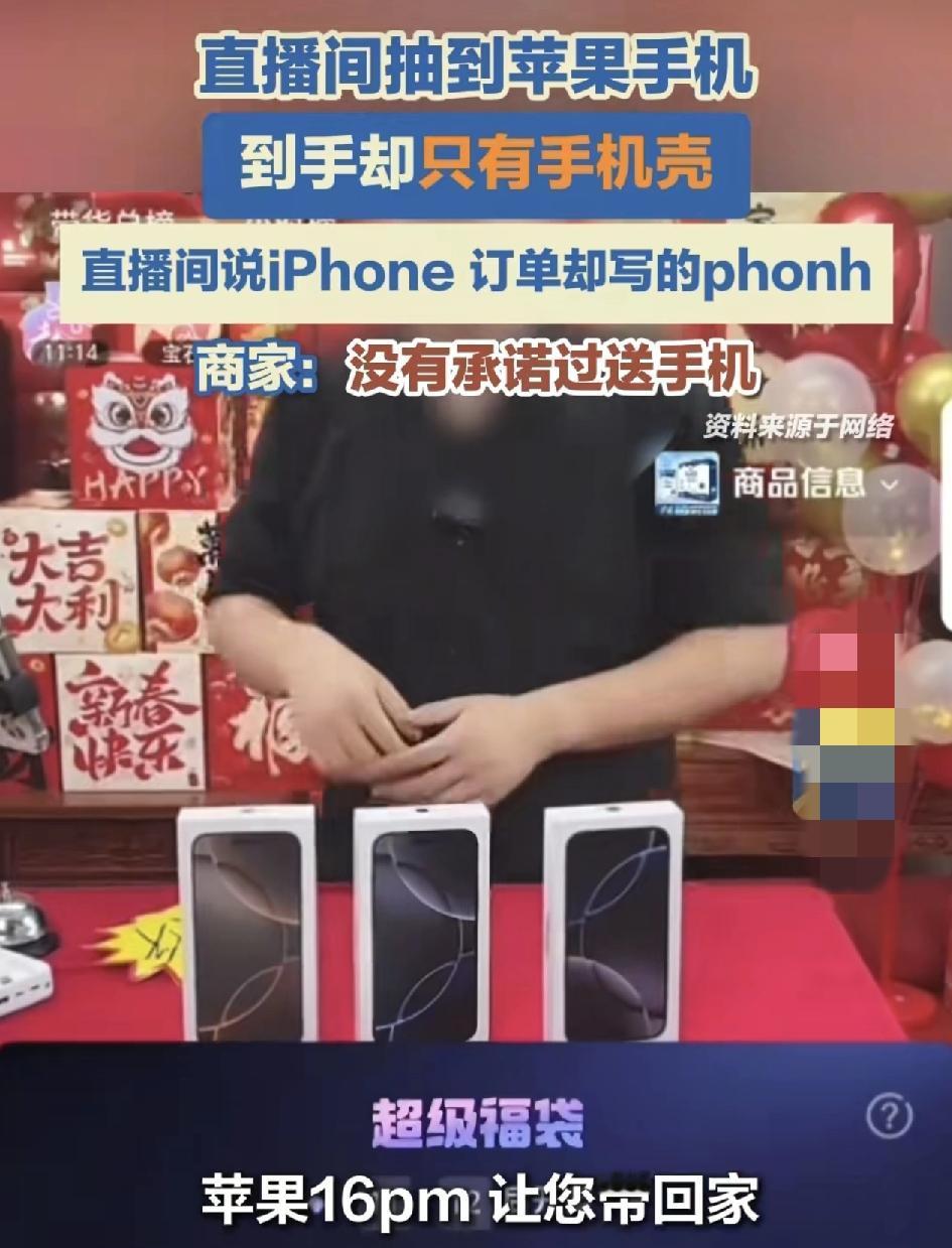 网友发视频称自己在某直播间抽中主播,推出的抽奖活动,中了一台iPhone16结果收到只有手机壳。直播间的客服却称从来没有承诺过送iPhone16,因为他们所说的“iphone”是 “iphonh”,网友直呼,这简直就是套路。这么明摆着就是坑骗消费者,网友应该直接曝光其直播间的名称,少让更多的消费者上当受骗,毕竟蹲在一个直播间的时间要好几个小时,既然中奖了,就要兑现承诺。