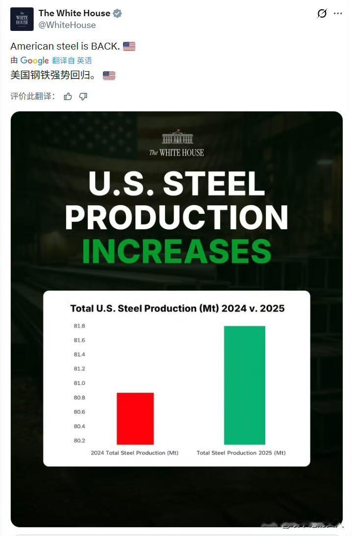我去! 白宫要是再拍马屁,真的要拍到特朗普的腿上去了?你看看白宫怎么说的,特朗普上台前和上台后,美国钢铁产量相差这么大,这个绿色珠子比红珠子增多了一倍。[捂脸][捂脸]