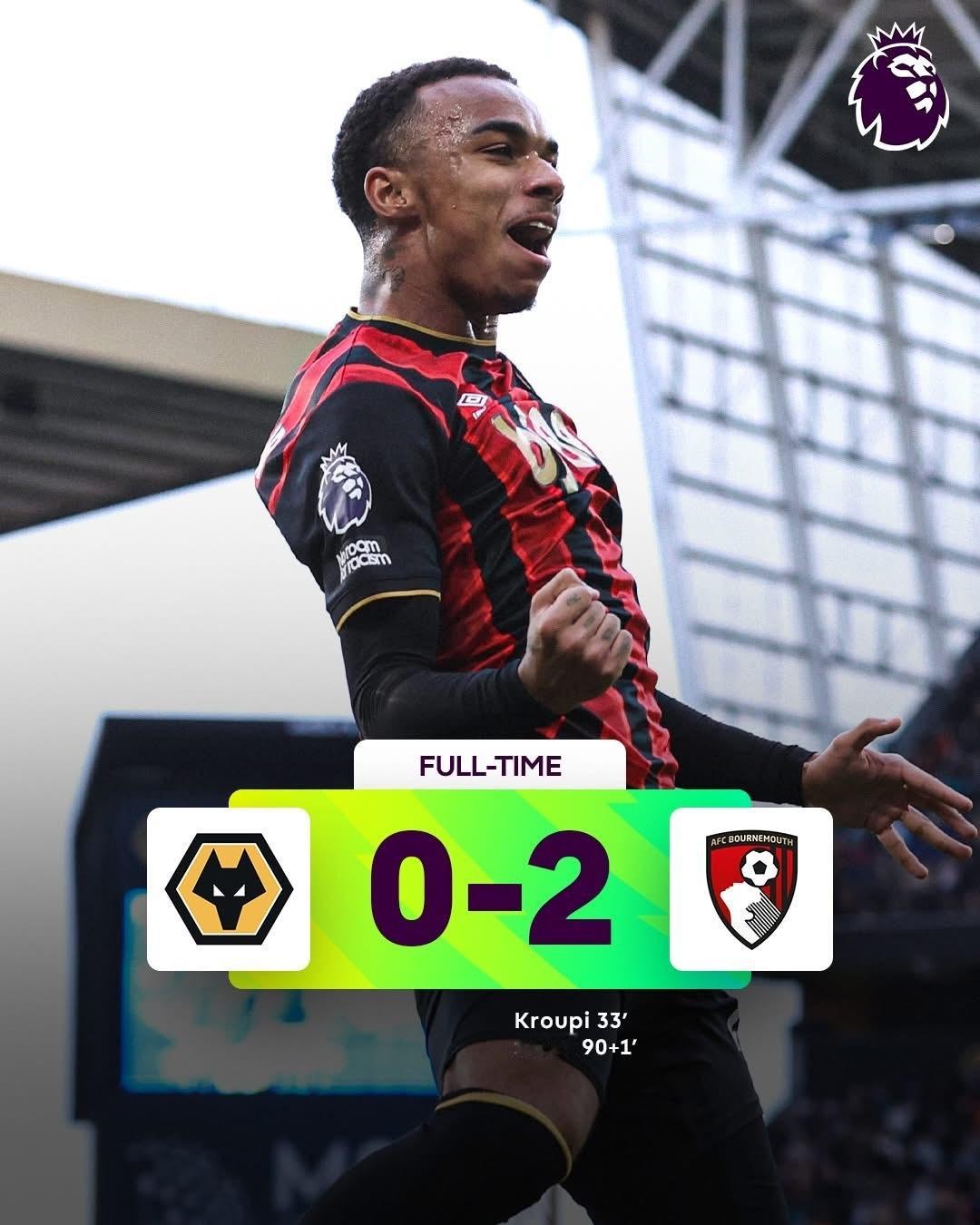 英超第24週賽事賽果-列斯聯0-4 阿仙奴白禮頓1-1 愛華頓狼隊0-2 般尼茅夫車路士3-2 韋斯咸利物浦4-1 紐卡素諾定咸森林1-1 水晶宮曼聯3-2 富咸阿士東維拉0-1 賓福特托定咸熱刺2-2 曼城辛德蘭🆚般尼(稍後時間進行)