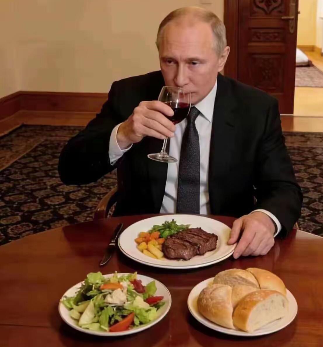 普京的这桌家常便饭,看似简单却着实不便宜,没有200元人民币根本下不来,若是在西餐店享用,价格只会更贵。餐食搭配经典:鲜嫩的牛排、清爽的色拉、松软的白面包,再配上一杯醇香红酒,简约却不失格调。看似是日常简餐,实则食材与搭配都有讲究,平凡的组合背后,藏着实打实的成本,也让人体会到,即便家常风味,优质的食材与搭配也从不会廉价。