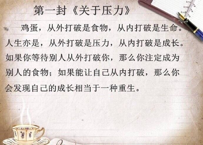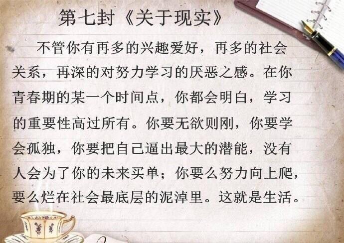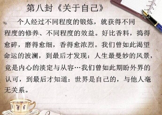 这是你生命中最好的年纪,别总把没意思挂在嘴边,身体健康,亲人安在,现世安稳。不要因为一点小事,心情就一团糟。 每当我找不到存在的意义,就看看这些话勉励自己!