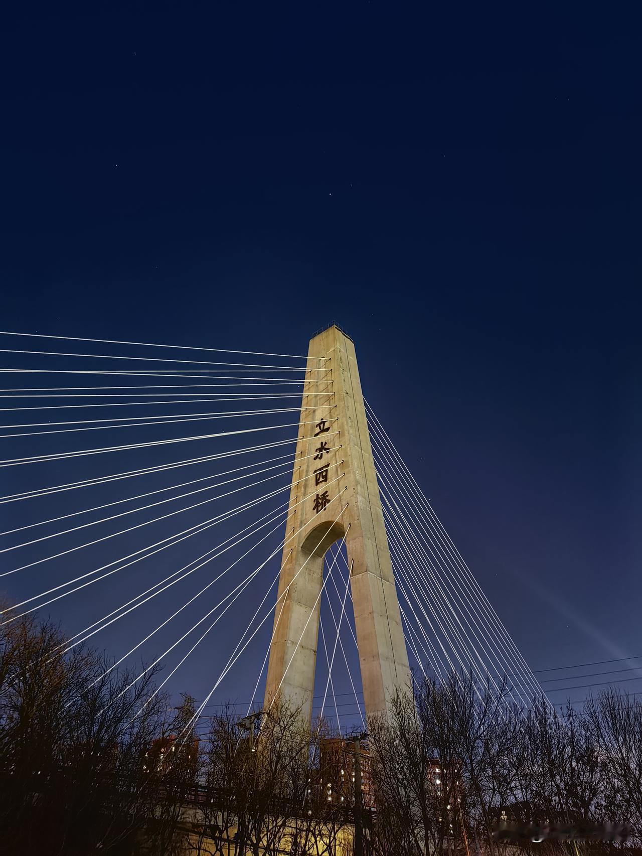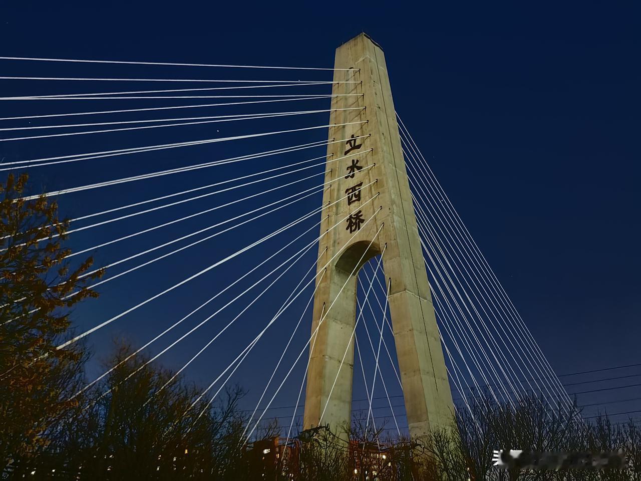 北京天通苑地标立水西桥。相比上海、南京,武汉,甚至兰州,北京的桥不多,不大,因为境内没有大江大河需要跨越。北京比较多的是立交桥,带钢索的桥也有几座。比如这座立水西桥,站在桥下看大桥,很是雄壮。 立水西桥于2004年2月开工,2005年11月竣工,2007年10月与北京地铁5号线同时投入使用。桥全长210米,主跨108米,主塔高66.9米,共有28组钢索,整座桥梁“集弯坡斜于一体”,是国内首座小半径曲线斜拉桥,也是亚洲第一座集斜、弯、坡为一身的跨河斜拉桥。 立水西桥跨的是清河。清河属北运河水系,是温榆河支流,因历史水质清澈得名。清河历史源头为海淀区碧云寺;1960年代后起点改为玉泉山安河闸,水源以京密引水渠引入的密云水库水为主;流经海淀、朝阳、昌平,于顺义沙子营汇入温榆河,全长约23.6公里,流域面积约210平方公里。北京地标建筑 桥梁摄影 城市交通动脉