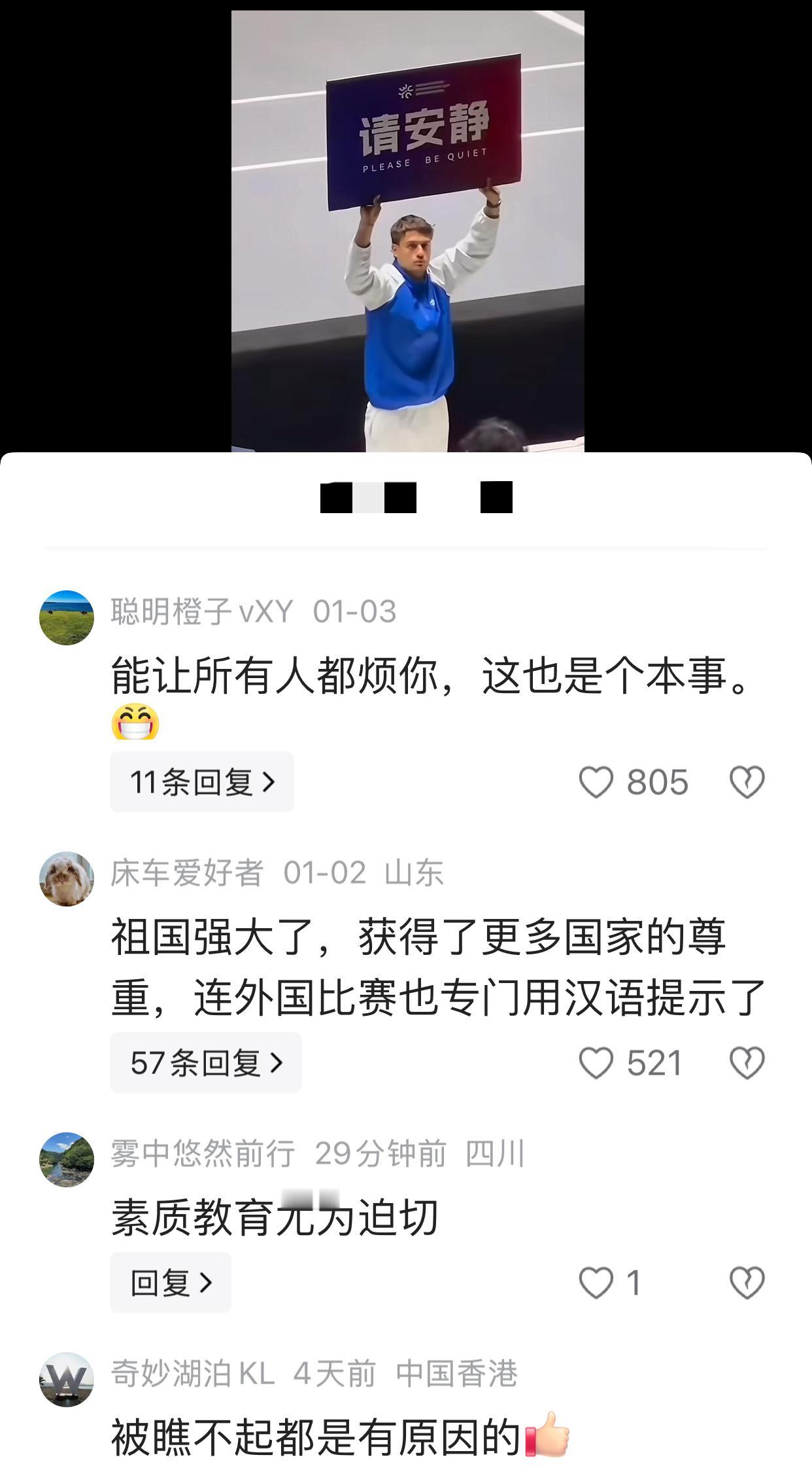 有人在评论区留言说:祖国强大了,获得了更多国家的尊重,连外国比赛也专门用汉语提示了。