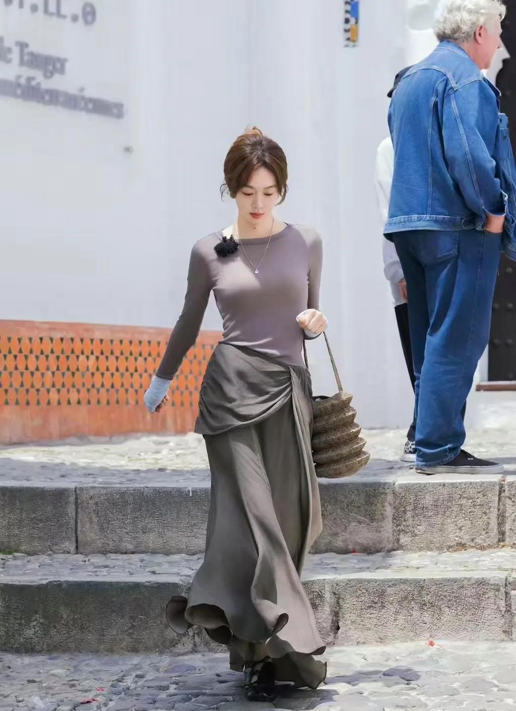 👗 姜妍这身材比例,我直接慕了! 姐姐这是什么神仙身材!修身打底+垂坠感长裙,把曲线勾勒得恰到好处,走在街上自带气场,松弛又高级。 这种不费力的时髦感,真的太会穿了!姐姐的腰不是腰,是夺命三郎的弯刀吧!😻 这才是我们普通人可以直接抄作业的穿搭模板,美到想焊在身上!