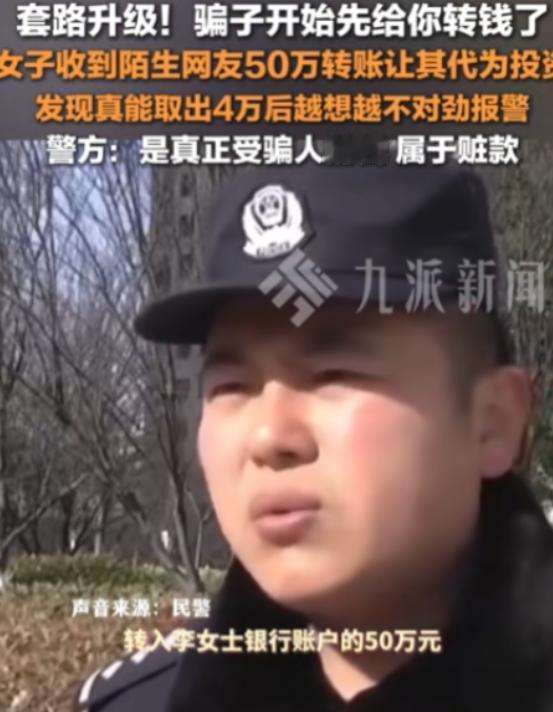 防不胜防!近日江苏,骗子给女子转了50万让她拿去“投资”,她到银行试着取出40000元,发现竟是真的!万万没想到,女子随后的一个动作却让骗子哭晕在厕所!网友:有这好事,骗子咋不找我? 这事发生在江苏常州,主角是普通上班族李女士,平时就是上班下班,闲下来刷刷短视频,日子过得平平淡淡,压根没想着会和“天上掉馅饼”的事扯上关系。 直到那个伪装成“退役军人”兼“投资负责人”的骗子,通过短视频找到她,一开始没提钱,就陪着聊家常,还说能带着她拓展市场、赚大钱,慢慢取得了李女士的信任。 咱们都知道,一般骗子都是哄着受害者往里面投钱,可这次这个骗子完全不按套路来,为了彻底让李女士放下戒心,居然直接说要给她出启动资金。 李女士一开始压根不信,觉得天下没这么好的事,还想着是不是骗局,可没等她多想,手机就收到了银行到账提醒,整整50万,一分不少地进了她的账户。 看着账户里的50万,李女士还是半信半疑,毕竟太离谱了,她决定去银行试试,取4万块钱看看这钱是不是真的。 等到银行柜员把厚厚的4沓现金递到她手里,摸着钞票的真实触感,李女士才确认,这钱是真金白银,不是什么虚假到账。 那一刻,她心里也动了心思,难不成真的遇到贵人,能白捡50万? 可就在她拿着现金满心纠结的时候,骗子的消息疯狂发来,语气特别急躁,一个劲催促她赶紧把剩下的46万转去指定平台,要么就继续取现再转过去,全程不提之前聊的市场、赚钱的事,满脑子就盯着这笔钱。 而且不管李女士怎么说,骗子都不肯开视频,只敢用文字沟通,这让李女士心里的疑虑越来越重。 加上之前刷短视频时看过的反诈科普,还有刚才去银行取现,柜员随口问的一句“这钱哪来的”,瞬间点醒了李女士。 她猛然反应过来,这根本不是什么好事,天上掉的不是馅饼,是陷阱。 要是真的把钱转出去,自己很可能就成了骗子洗钱的工具,到时候不仅钱没了,还得承担法律责任。 想通之后,李女士没犹豫,没按骗子说的转钱,反而直接拨通了110报警,还把取出的4万现金和跟骗子的聊天记录全都交给了警方。 警方介入后,很快就冻结了她账户里剩下的46万,没给骗子留一点机会。 后来警方调查才知道,这50万根本不是骗子自己的钱,全是其他受害者被骗的血汗钱。 原来在“断卡行动”的高压下,骗子不敢用自己的账户走账,就想找李女士这样的“清白账户”帮忙洗钱,一旦李女士转了钱,就会涉嫌帮信罪,到时候真是跳进黄河也洗不清。 不得不说,李女士真的很理智,在50万的诱惑面前没乱了阵脚,反手报警把骗子的计划彻底打乱,也保住了自己。 这事也给大家提了个醒,不管遇到多诱人的好事,只要涉及到转账、陌生账户大额到账,一定要多留个心眼,别被贪婪冲昏头脑,遇到可疑情况第一时间报警才是最稳妥的。 大家对此怎么看?欢迎评论区留下您的观点!