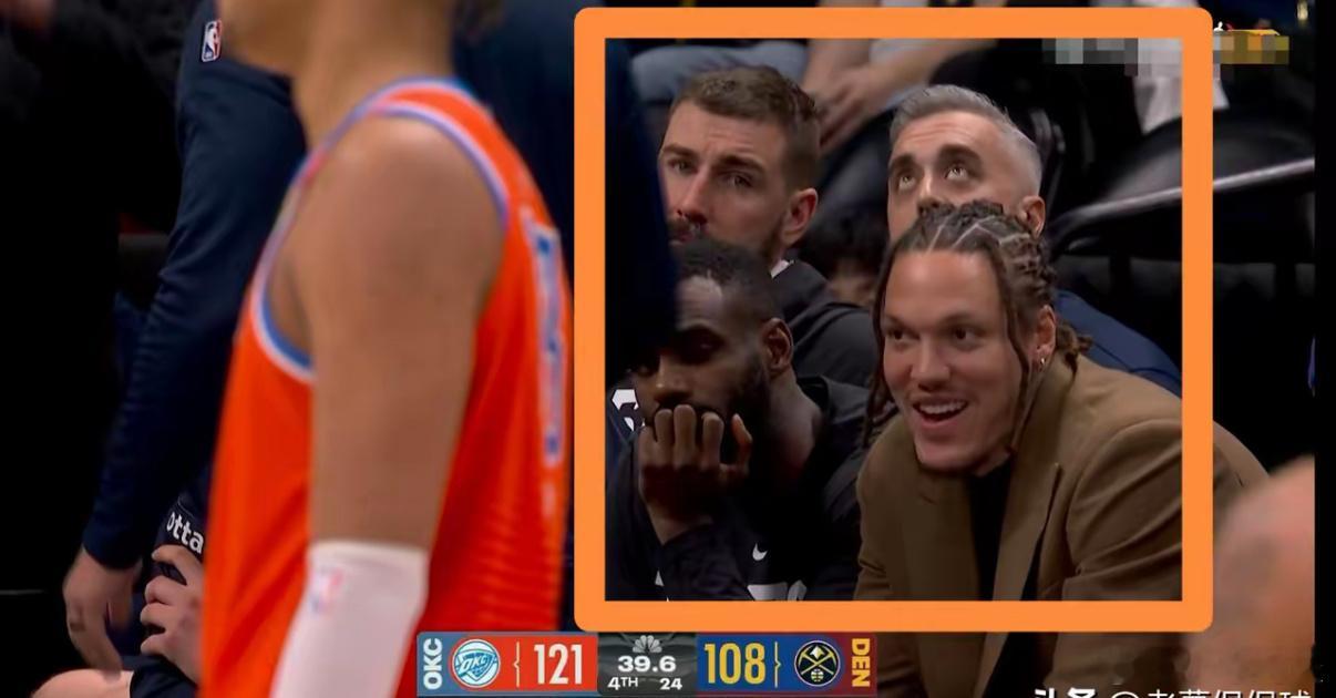在今天掘金主场迎战雷霆的比赛中,发生了特别耐人寻味的一幕。当时距离全场比赛结束还剩最后的39.6秒,掘金以108:121落后对手13分。此时转播镜头给到了掘金的替补席,只见此役因伤缺阵的戈登面带微笑的坐在场下,整个人看起来非常的轻松,而戈登身旁的小哈达威则是面如死灰一脸的沮丧,两人的面部表情形成了鲜明的对比,给人一种耐人寻味的感觉。