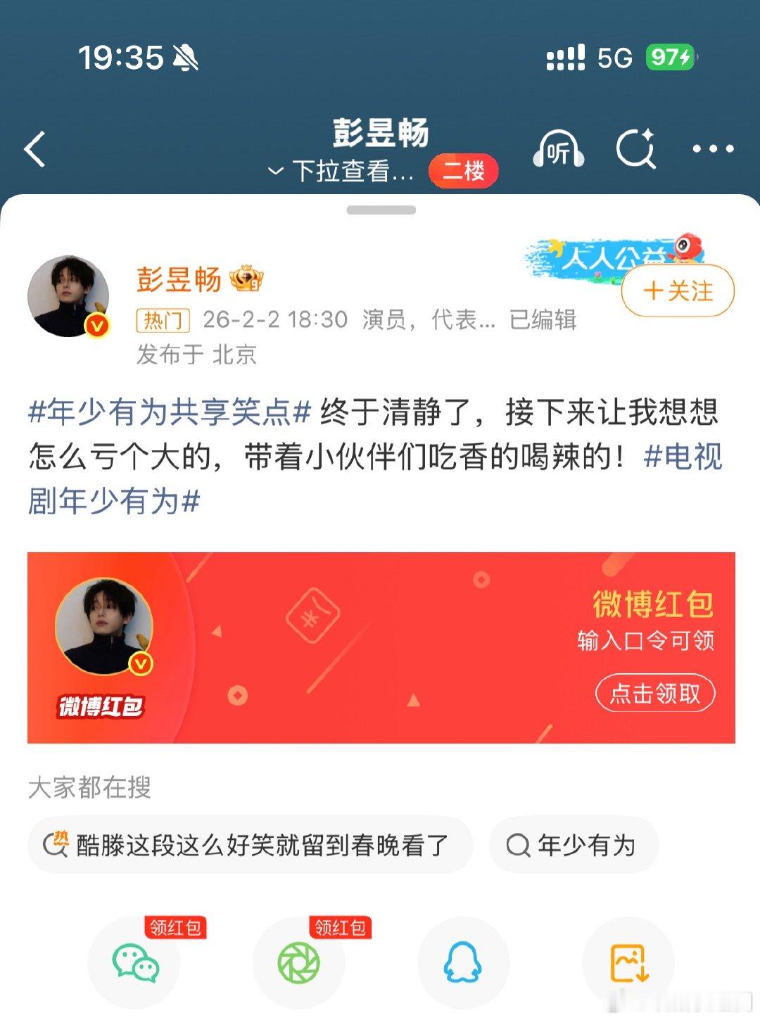 彭昱畅发红包 彭昱畅硬核宠粉!连续7天红包连发,天天有惊喜,日日沾财气~ 锁定彭彭,准时蹲抢,一周快乐不重样,这波福利错过真的会哭!
