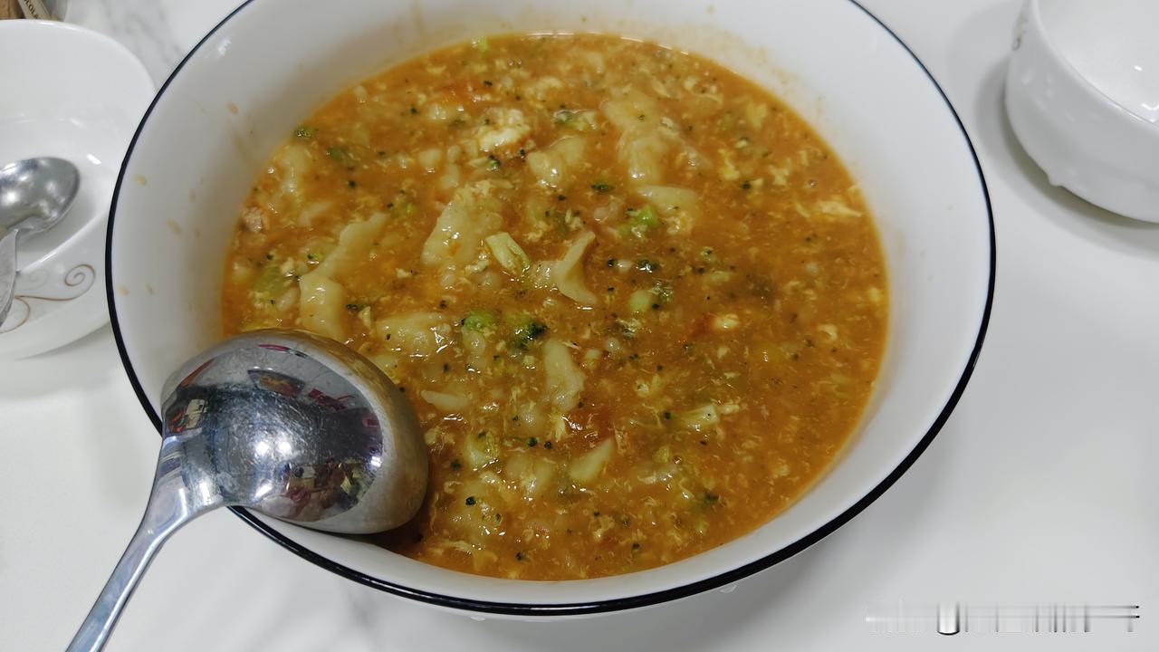 真是不容易呀! 能吃到大学生做的饭。 自从放假之后, 每日中午甚至下午起来的大学生。 今天一反常态,早早的起床了。 并且宣称要给妈妈做饭。 说干就干。 洗菜,切菜一套行云流水下来。 用了整整一个小时。 老妈终于吃上了大学生做的疙瘩汤。 味道鲜美。 那叫一个幸福啊。 要知道这可是大学生第一次做早餐呢。[捂脸]