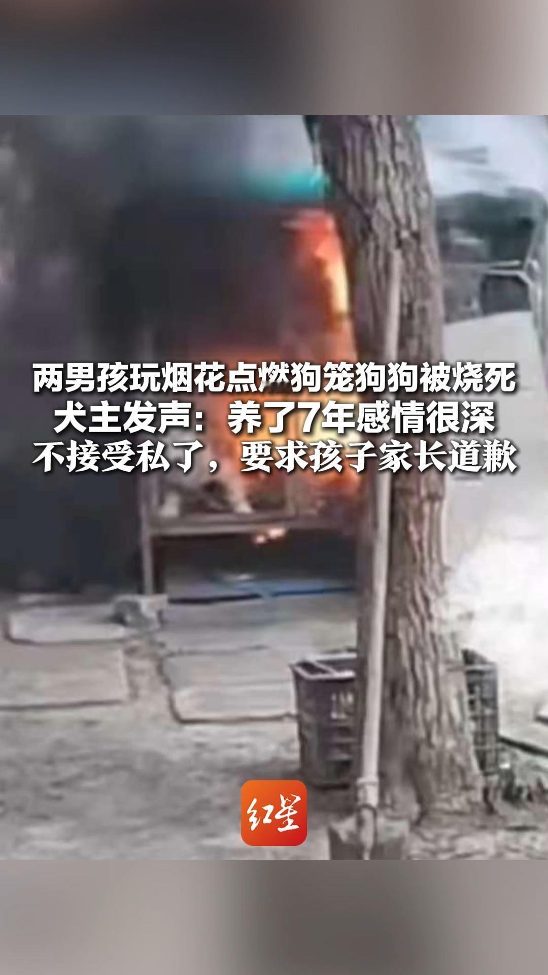 江苏连云港东海县,一条笼中宠物狗被两名男孩点火致死,家属愿赔6000元或换狗私了
