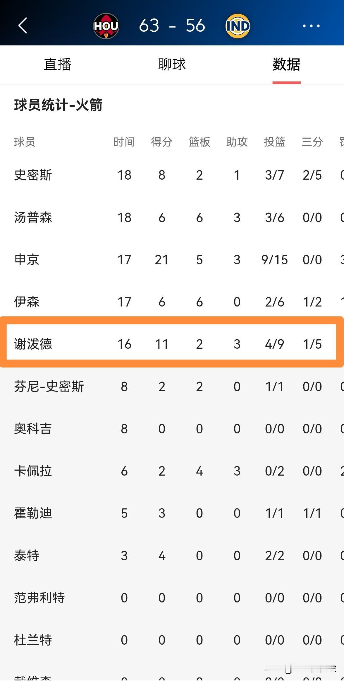 火箭超级新星谢波德终于不低迷了!在今天进行的火箭和步行者的比赛中,目前双方的上半场比赛已经结束,火箭暂时以63:56领先对手7分。在前两节比赛中,谢波德一扫最近几场比赛的低迷,展现出了非常出色的竞技状态,他在首发出战的16分钟里,投篮9中4,其中三分球5中1、罚球2中2得到11分2篮板3助攻2抢断,他的场上正负值为+4。 虽然谢波德的进攻状态还没有恢复到自己的最佳状态,但是和前几场比赛相比,他已经有了非常大的改善。