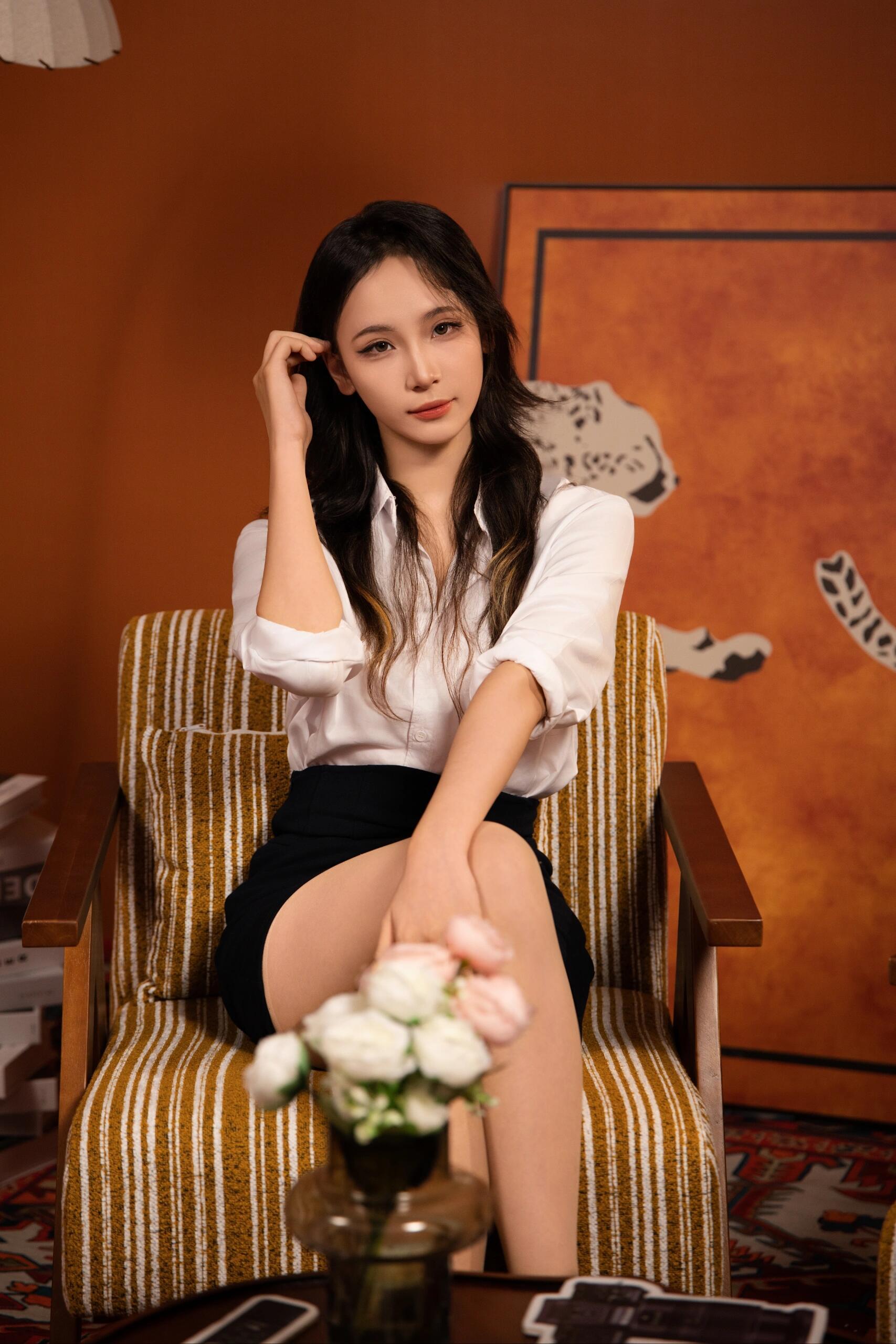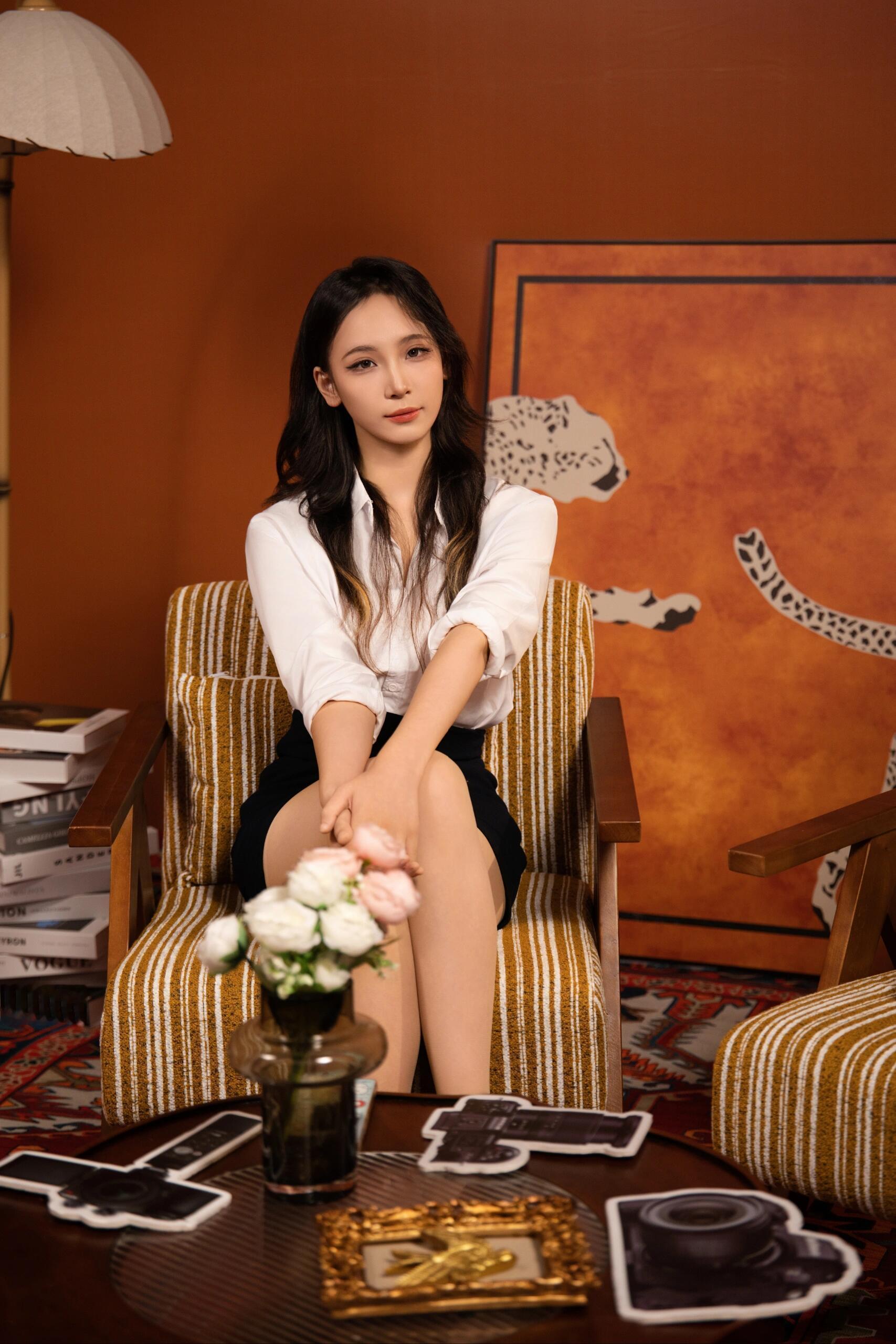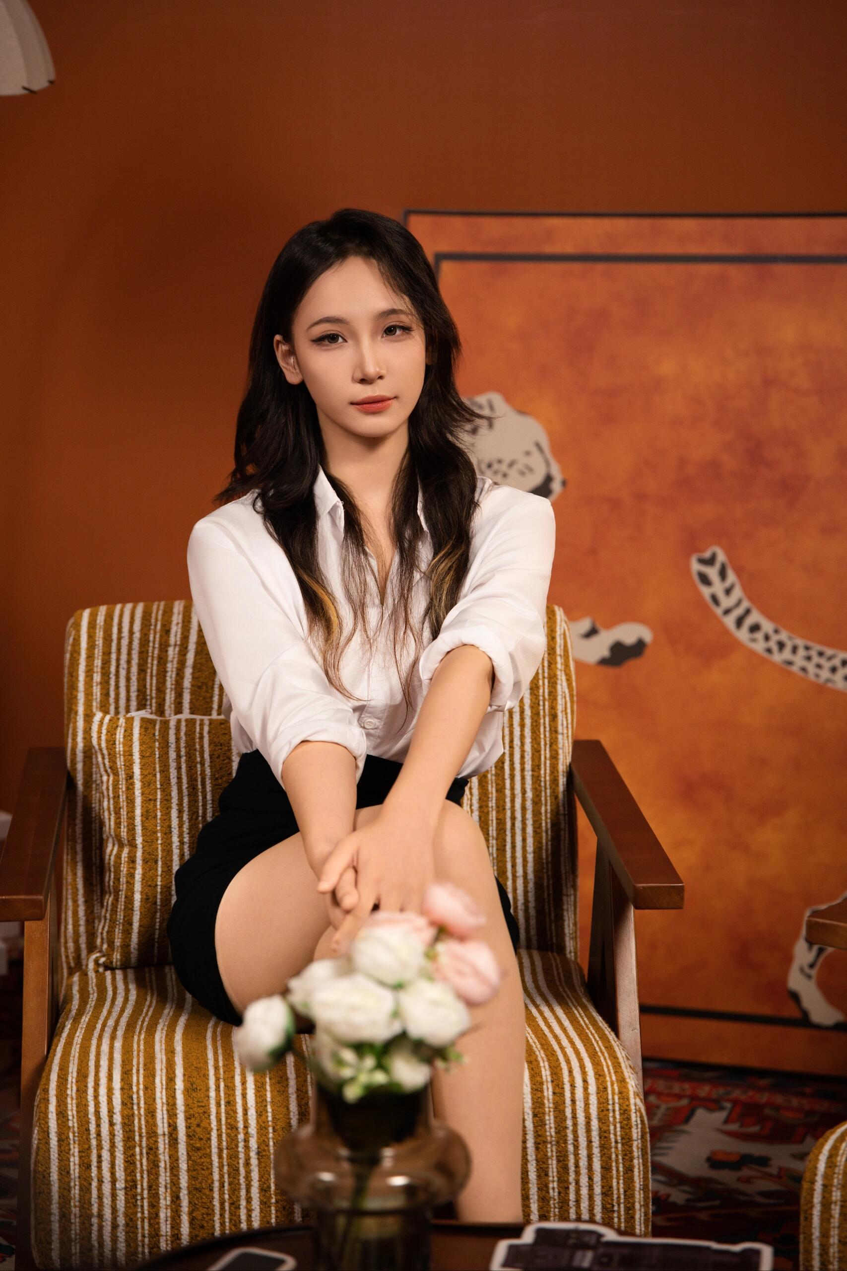 唐嫣身穿 Oscar de la Renta 2025秋冬金色无袖花叶刺绣开叉裙