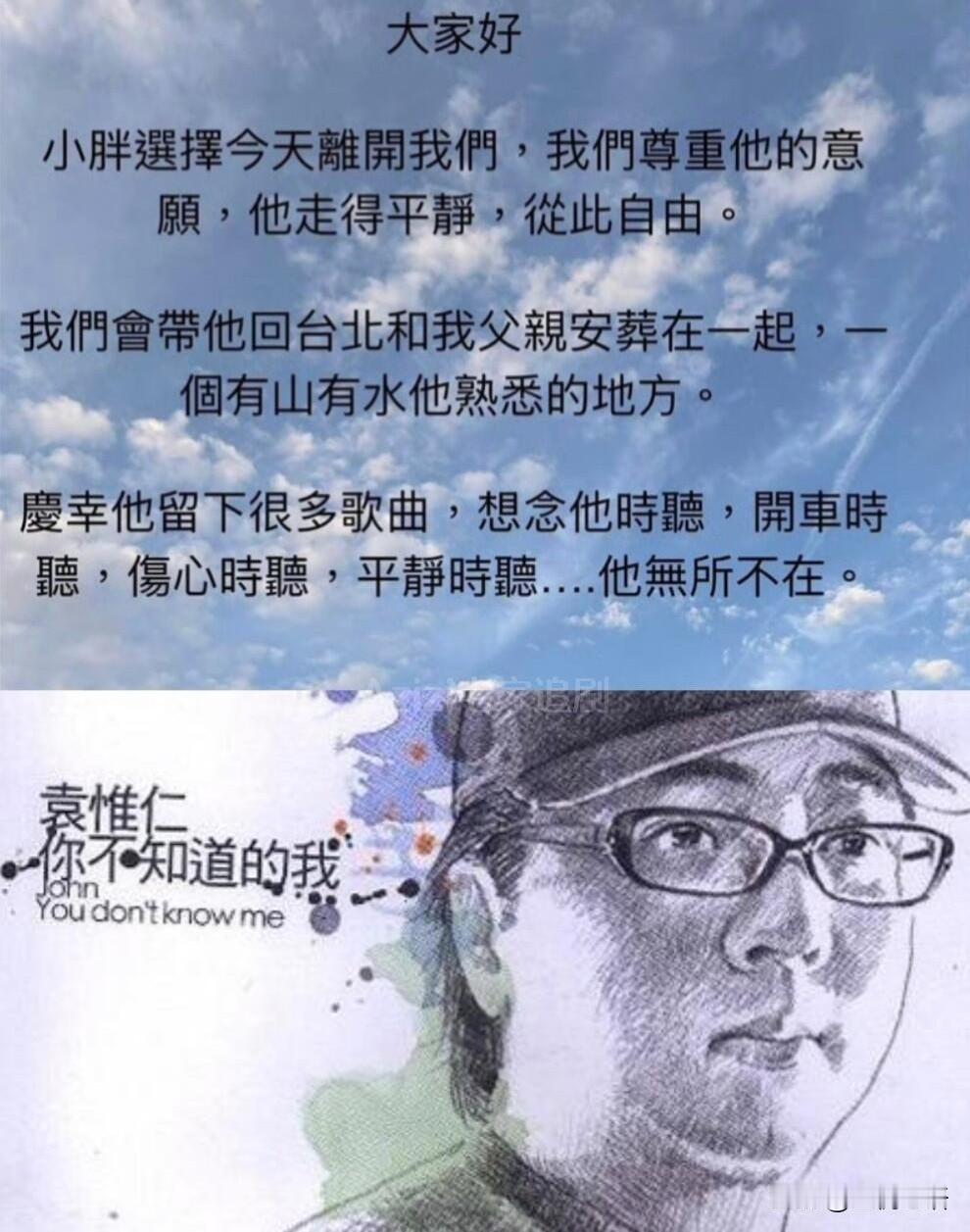 你可能不知道这个人, 但一定听过他写的歌! 谁的青春里没听过袁惟仁的歌啊! 可能你不知道“小胖老师”这个名字,但那英的《征服》《梦一场》,王菲的《执迷不悔》《旋木》,绝对刻在DNA里! 他的歌太有魔力了,娓娓道来的旋律,配上戳心的歌词,难过时听、想念时听都特别共情。 今天得知他平静离开的消息,突然就鼻子一酸。这几年总在告别,好在他留下了这么多经典。 以后开车时、独处时,再听到这些歌,就像他还在一样。愿小胖老师一路走好,在另一个世界继续自由创作~