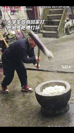 “冤不冤?”2月1日,贵州一大学生放假回家,家里准备打糍粑就想着尝试一下,不料,一锤下去,竟把粑槽砸掉了一块,家人笑称:“最没用的把最有用的东西搞坏了”,自己感叹:“正如网友说的,那槽吊着一口气等着来‘害’我!”   小王是贵州一所高校的大二学生,放寒假后,他第一时间收拾行李回了家,想着难得有空,多帮家里做点事,也体验一下小时候只敢看、不敢试的农活。   回家的第二天,家里的长辈就决定打糍粑,一来是家里人都爱吃,二来也是趁着一家人都在,图个热闹。当天上午,家人就提前把糯米泡好、蒸熟,倒进了院子里的粑槽里。   粑槽是用整块青石凿成的,表面被常年的捶打磨得光滑发亮,据家里老人说,这粑槽已经传了三代人,是家里的老物件,平时都小心翼翼地爱护着,只有逢年过节或者家里有喜事的时候才会拿出来用。   看着长辈们轮流握着木锤,一下一下有节奏地捶打着糯米,糯米慢慢变得黏稠、有韧性,小王心里也痒痒的,主动凑过去,提出要自己试试。长辈们特意叮嘱他,打糍粑不用太用力,重点是找对角度,顺着粑槽的边缘轻轻捶打,避免磕到槽壁。   小王点点头,双手紧紧握住木锤的手柄,深吸一口气,学着长辈们的样子,把木锤举过头顶,然后慢慢往下放,试图对准粑槽里的糯米。   可第一次尝试,他就没找对感觉,木锤落下的时候角度偏了,没有砸在软糯的糯米上,反而重重地磕在了粑槽的边缘,发出“咚”的一声闷响。   周围的家人都吓了一跳,连忙让他停下来看看,还好只是轻轻磕了一下,粑槽没有出现破损,糯米也只是溅出来了一点点。小王有些不好意思地笑了笑,说自己没掌握好技巧,让家人再给一次机会,这次一定会小心。   长辈们见状,只是再次叮嘱他,放慢速度,找准角度,不用刻意用力,顺其自然就好。小王牢记长辈的话,再次握住木锤,这一次他没有急于把木锤举得太高,而是慢慢调整角度,眼睛紧紧盯着粑槽里的糯米,确认对准位置后,才缓缓用力,把木锤砸了下去。   这一次,木锤准确地砸在了糯米上,小王心里一阵高兴,觉得自己已经掌握了打糍粑的技巧,自信心也一下子上来了。他没有停下动作,继续举起木锤,这一次,他不自觉地加大了力气,想要打得更快、更好,让家人看看自己的本事。   可就在木锤重重落下的瞬间,只听见“咔嚓”一声脆响,小王连忙停下动作,低头一看。只见粑槽的边缘,硬生生被他一锤砸掉了一块掌心大小的石片,原本光滑的表面出现了一道明显的破损,槽里的糯米也溅得到处都是,有的粘在了地上,有的粘在了木锤上。   周围的家人看到粑槽被砸坏,忍不住笑了起来。家里的爷爷笑着摇了摇头,对着小王说了一句:“最没用的把最有用的东西搞坏了。”这句话没有丝毫指责的意思,更多的是无奈和调侃,毕竟小王也是好心帮忙,只是没掌握好技巧。   当时,有人在旁边将这一幕拍了下来发到了网上,评论区被网友们的调侃和分享刷屏了。   有网友调侃道:“当代大学生回村破坏力名不虚传,别人打糍粑是美食制作,你打糍粑是文物破坏。”   还有网友留言:“我懂这种感觉,上次我回家帮我妈喂猪,结果把猪食槽踢翻了,我妈也是这么说我的。”   还有人说:“我想帮奶奶劈柴,结果一斧头下去,没劈到柴火,反而劈在了柴灶上,把柴灶劈出了一道缝,从那以后,奶奶再也不让我碰斧头了。”   除此之外,还有一些网友表示,这件事看着好笑,其实也反映出了一个现实问题,现在很多年轻人从小在城市长大,或者虽然在农村长大,但平时很少参与农活,对传统农活和传统工具都不熟悉,所以才会出现这样的“翻车”场面。   最后,想问一下大家,你们放假回村的时候,有没有过类似的“翻车”经历?有没有帮家里倒过忙?欢迎在评论区分享你们的故事,一起聊聊当代大学生回村的那些趣事和尴尬事。