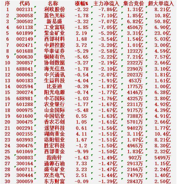 2月3日开盘45分钟,主力“卖出的 ”30名单! 利欧股份:净流出 7.86亿元 蓝色光标:净流出 7.10亿元 新易盛:净流出 7.07亿元 工业富联:净流出 7.05亿元 紫金矿业:净流出 5.20亿元