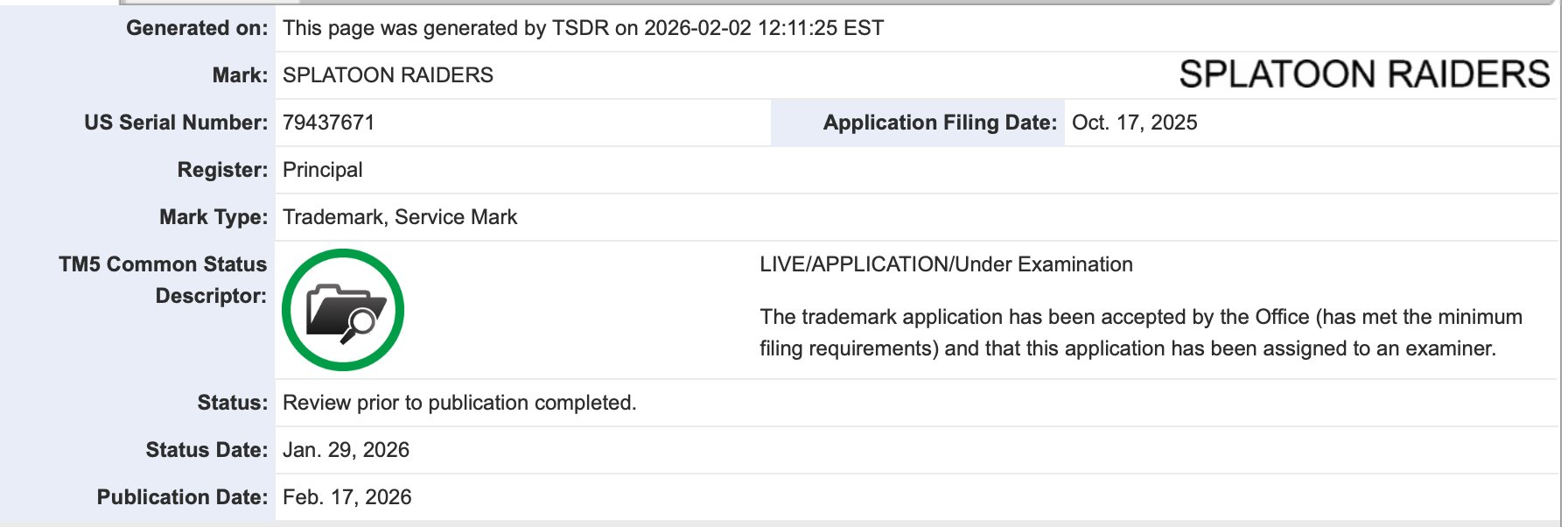 【《斯普拉遁:涂击队》商标更新日期,发售日要来了?】
