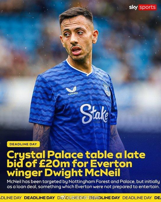 【麦克尼尔转会失败内幕】英超关窗日,水晶宫报价2000万英镑,向求埃弗顿求购26岁本土边锋麦克尼尔,双方火速达成协议,球员同意转会并且在伦敦完成体检,双方也在关窗前及时提交了转会文件,交易眼看就要压哨完成。