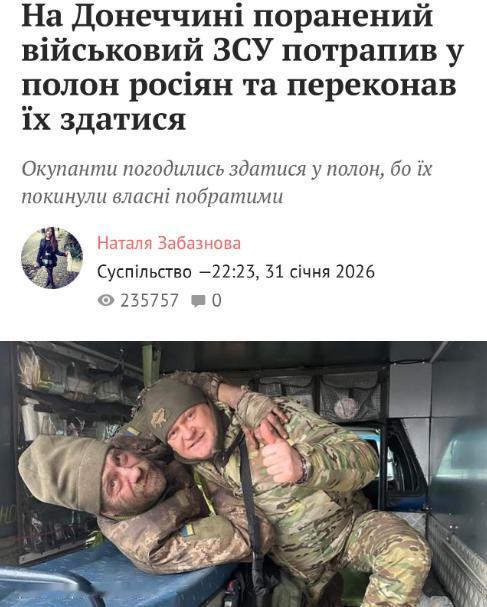 图文:战场奇闻:受伤乌军战俘说服俄军投降 在顿涅茨克地区,一名受伤的乌克兰士兵被俄军俘虏,并说服俄军投降。占领者之所以同意,是因为他们自己的战友都抛弃了他们。 这名俄军士兵说道。“我当时正在照顾这名伤员。我的战友都抛弃了我。当我意识到无人救援时,我请他(乌克兰士兵——编者注)联系他的战友,以便他们能帮助我们脱身。我非常感谢他的营救,”这 据“军事”网站报道,受伤的乌克兰士兵已被移交给医护人员。