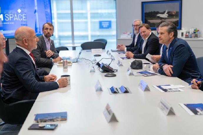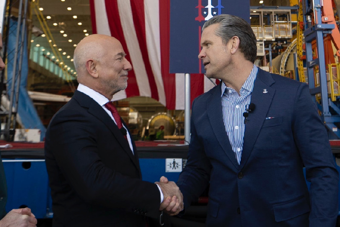 美国战争部长皮特·赫格塞斯(Pete Hegseth)于2026年2月2日视察了位于佛罗里达州梅里特岛的蓝色起源公司生产中心,并会见了公司创始人杰夫·贝索斯。此次访问是其“自由兵工厂”全国巡回活动的一部分,旨在推动美国军事重建、改革武器采购体系,并向传统国防承包商施压,鼓励创新企业参与国家安全项目。赫格塞斯在讲话中强调太空技术对国家战略安全的关键作用,称赞蓝色起源在预算内、提前完成任务的高效模式,呼吁打破五角大楼官僚主义,优先交付实战能力。他重申特朗普政府三大原则:美国优先、实力求和平、常识治理,并提出包括建设“美国金色穹顶”太空导弹防御系统在内的多项军事强化目标。