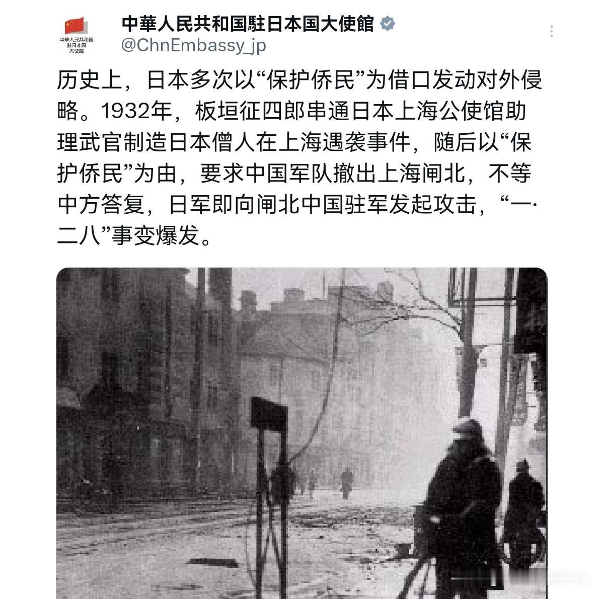 高市早苗脸上挂不住了!中国驻日大使馆作出反击!在高市早苗声称,台海若生冲突,美日要联合撤离在台的日本与美国公民;若美军遭攻击而日本无作为,日美同盟将崩溃。对此,我们驻日大使馆出来回应了。2月3日,我驻日大使馆写到,历史上,日本多次以“保护侨民”为借口发动对外侵略。 1932年,板垣征四郎串通日本上海公使馆助理武官制造日本僧人在上海遇袭事件,随后以“保护侨民”为由,要求中国军队撤出上海闸北,不等中方答复,日军即向闸北中国驻军发起攻击,“一·二八”事变爆发。很显然,我方拿出历史事实出来,这是驳斥得高市早苗颜面无存。 我们的意思很清楚,高市早苗别以为我们不知道其葫芦里面卖的是什么药?高市早苗不就是想要以此给介入我们的内政找一个借口吗?这种事情日本历史上干的多了。当年日本以“保护侨民”为借口,突然对我们发动攻击,现在高市早苗打的不就是这种算盘吗? 台湾问题是我们的内政,任何以“护侨”,“同盟”为借口去干涉我们的内政,那日本全境都会成为我们攻击的目标。现在的中国不是当年积贫积弱的中国,高市早苗妄图铤而走险,吃亏,挨打的一定会是日本。如果给机会,那我们对日本,一定会新账旧账一起算。