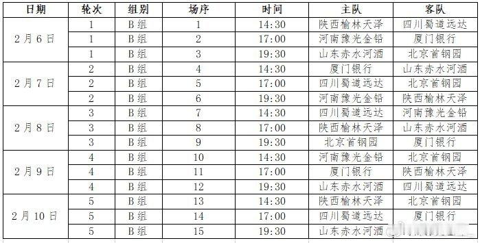 2026年2月3日-2025-2026CBA常规赛第23轮(第一阶段第23轮) 吉林78-72爆冷战胜浙江广厦(潜力赛:14-21)(吉林男篮终结三连败/卫冕冠军浙江广厦男篮终结三连胜)/天津101-96爆冷战胜山东(潜力赛:14-24) 2025-2026全国青年女排挑战赛第一阶段C组第2轮 南京师范大学3-1河南青年队(25-13 25-18 21-25 25-11)(南京师范大学女排获得六连胜/河南青年女排遭遇两连败)/江苏青年队3-0天津青年队(25-9 25-23 25-16)(江苏青年女排获得两连胜/天津青年女排遭遇五连败)/让二追三 上海青年队3-2大逆转战胜福建青年队(19-25 14-25 26-24 25-23 15-13)(上海青年女排获得四连胜/福建青年女排遭遇两连败)/辽宁青年队3-0山东青年队(25-23 25-19 29-27)(辽宁青年女排获得两连胜 前两局都是一度落后上演大逆转/山东青年女排遭遇两连败) 2025-2026全国青年男排挑战赛第一阶段C组第2轮 南昌大学3-1逆转战胜广东青年队(23-25 25-16 25-16 25-17)(南昌大学男排获得七连胜/广东青年男排遭遇两连败)/上海青年队3-1山东青年队(25-17 22-25 25-18 25-22)(上海青年男排获得六连胜/山东青年男排遭遇两连败)/福建青年队1-3被中山大学逆转(25-19 14-25 20-25 18-25)(中山大学男排获得七连胜) C组第2轮 河南青年队3-0河北青年队(25-22 25-17 25-20)(河南青年男排终结四连败/河北青年男排遭遇三连败)/D组最后一轮 北京青年队3-2逆转战胜天津青年队(25-22 23-25 17-25 25-23 15-6)(北京青年男排获得三连胜 第10名/天津青年男排遭遇六连败 排名倒数第二)/浙江青年队3-0辽宁青年队(25-23 25-19 25-16)(浙江青年男排获得两连胜 获得第9名/辽宁青年男排遭遇七连负 一胜难求排名垫底 结束本次比赛) 部分重点赛事预告:CCTV5直播:19:30 2025-2026CBA常规赛第23轮(第一阶段第23轮 最后一轮) *广东-上海 CCTV5+直播:19:00 2025-2026女排超级联赛A级常规赛第一阶段第14轮(最后一轮) *辽宁-北京 CCTV5客户端直播:17:00 2026亚洲羽毛球团体锦标赛男团小组赛首轮 中国-中国澳门 19:00/20:00(2场) 2025-2026女排超级联赛A级常规赛第一阶段第14轮(最后一轮) 河南-天津/*上海-山东/江苏-福建 19:00(2场)/20:00 B级第15轮(最后一轮) 浙江-河北/四川-云南/广东(深圳)-江西 13:00/15:00/17:00/19:00 2025-2026全国青年女排挑战赛第一阶段C组第3轮 天津青年队-上海青年队/河南青年队-辽宁青年队/山东青年队-南京师范大学/福建青年队-江苏青年队 13:00/15:00/17:00/19:00 2025-2026全国青年男排挑战赛第一阶段C组第3轮 山东青年队-福建青年队/广东青年队-河南青年队/河北青年队-南昌大学/中山大学-上海青年队 其他:19:35(6场)/20:00 2025-2026CBA常规赛第23轮(第一阶段第23轮 最后一轮) 宁波-北控/北京-福建/辽篮-江苏/南京(同曦)-深圳/青岛-广州/四川-山西/新疆-浙江稠州